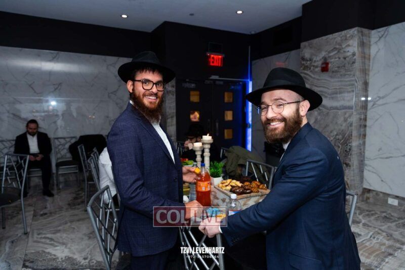 The L'Chaim of Effy Schmukler of Los Angeles, CA and Bat Sheva Hazan of Bay Harbor, FL took place at Lubavitch Yeshiva Hall in Crown Heights. Photos