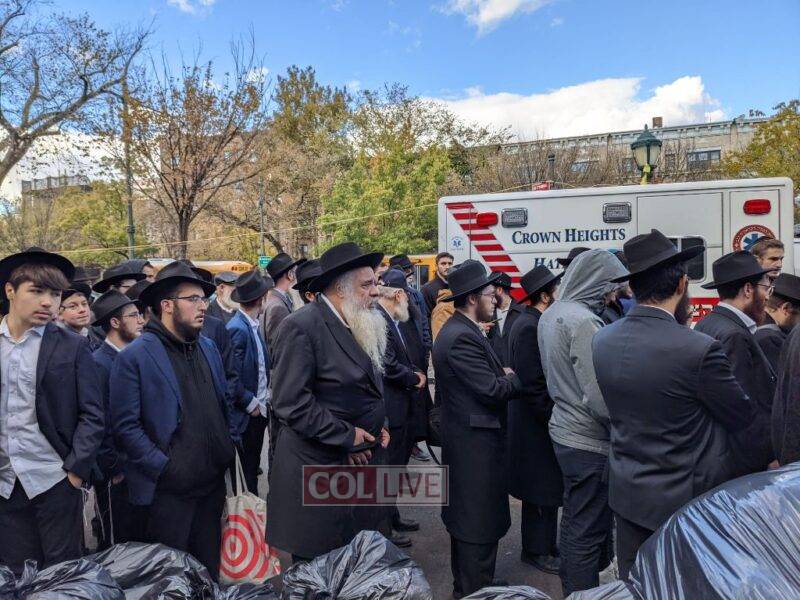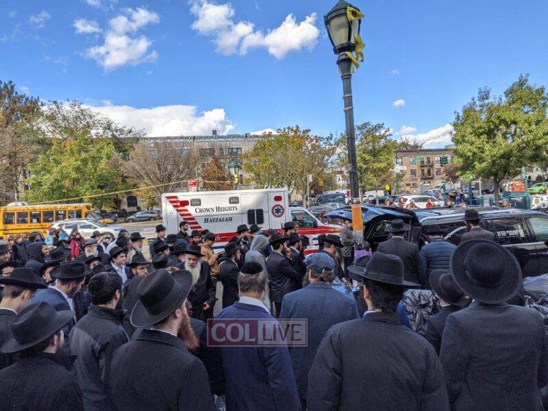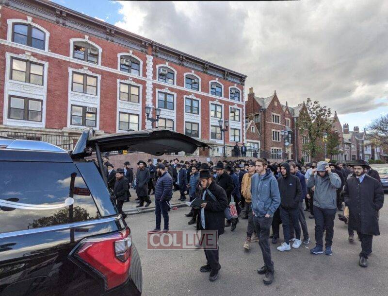 The Levaya of Menachem Mendel Zirkind obm, a bochur from Crown Heights, passed by 770 Eastern Parkway on the way to burial on Wednesday. Photos