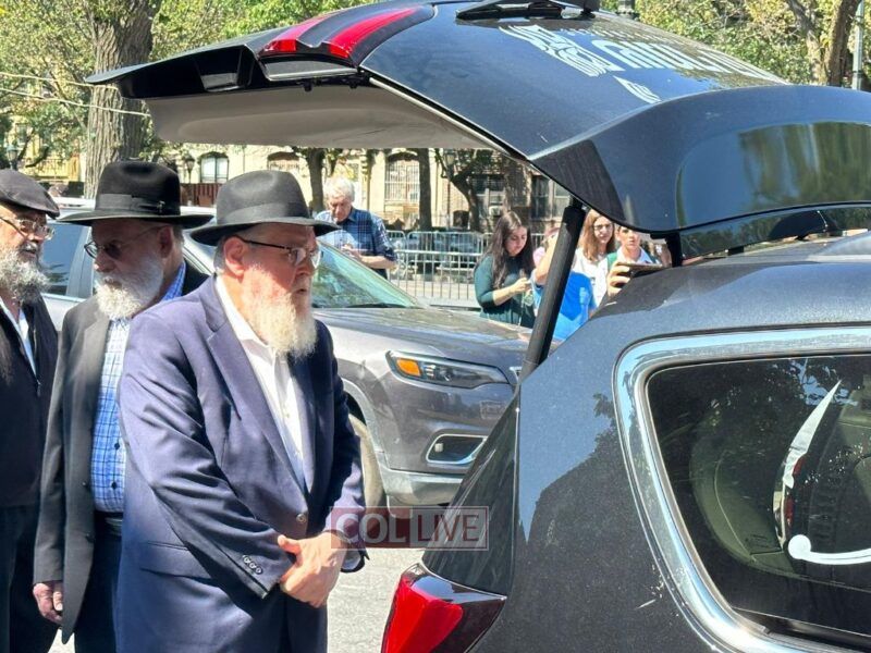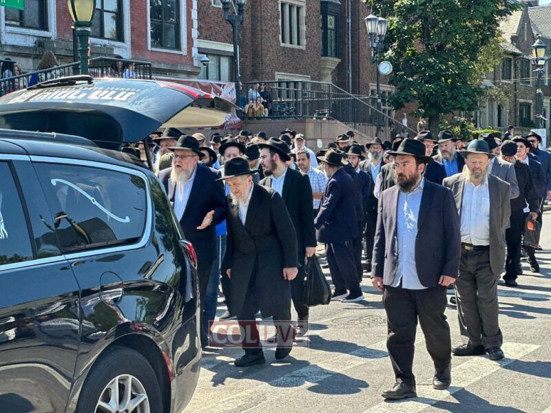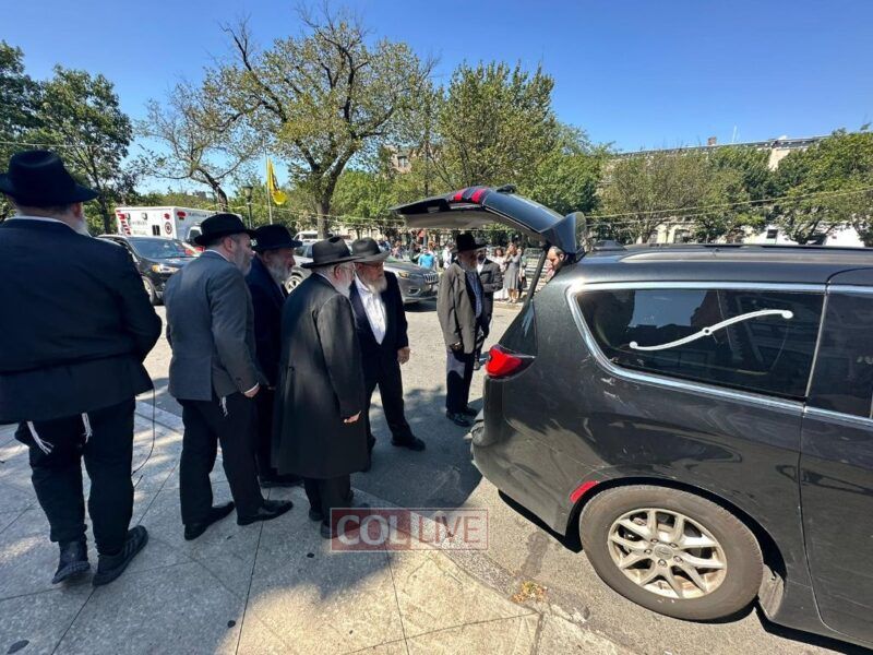The Levaya of Mrs. Leah (Luba) Pinson, wife of the 770 Gabbai Rabbi Yehoshua Pinson, passed by 770 on the way to burial on Sunday. Photos