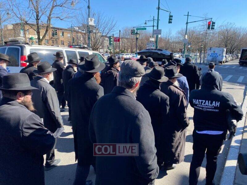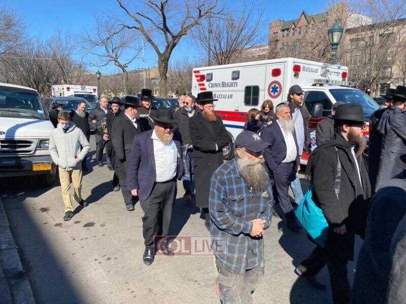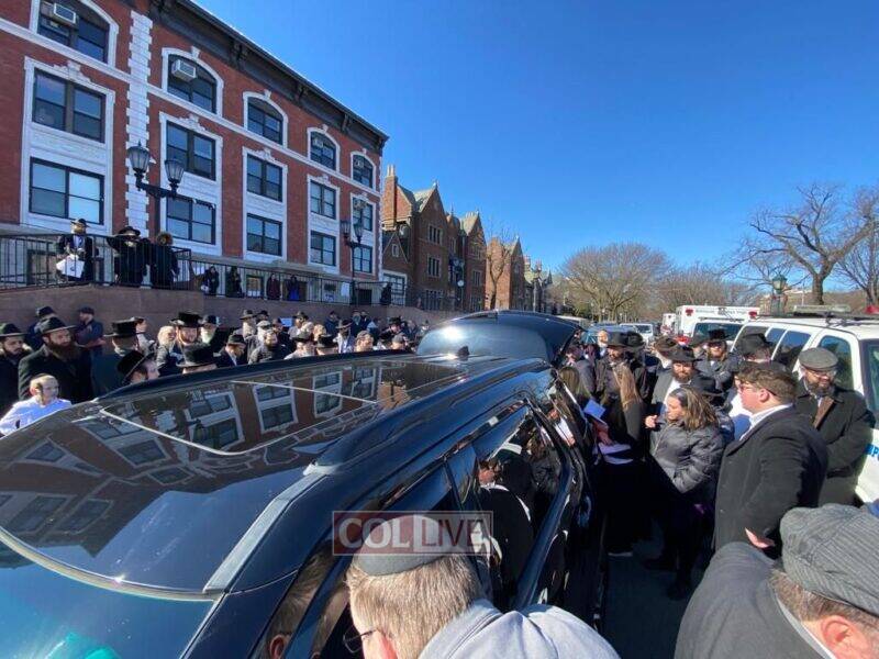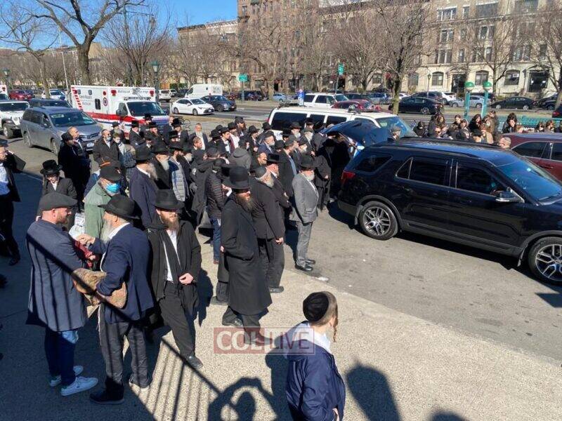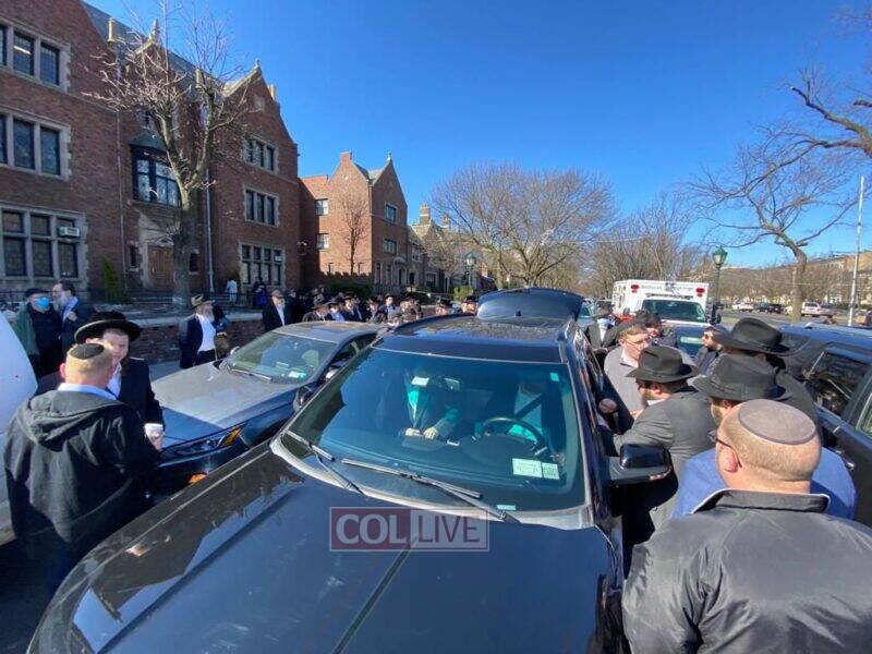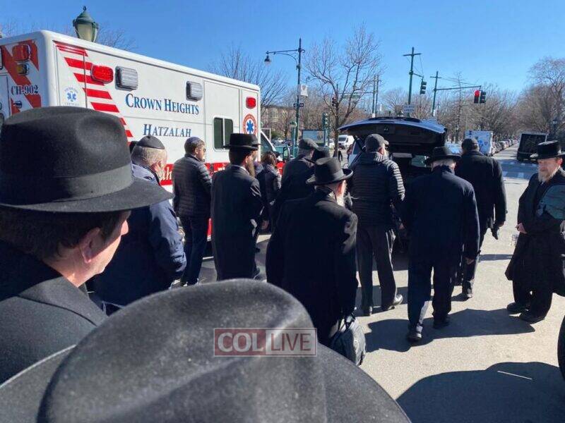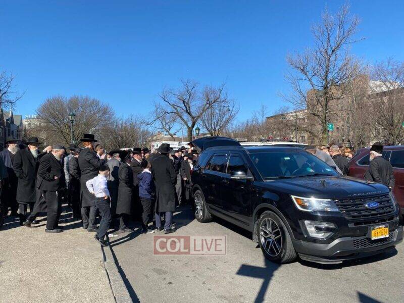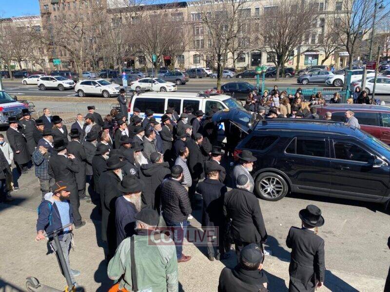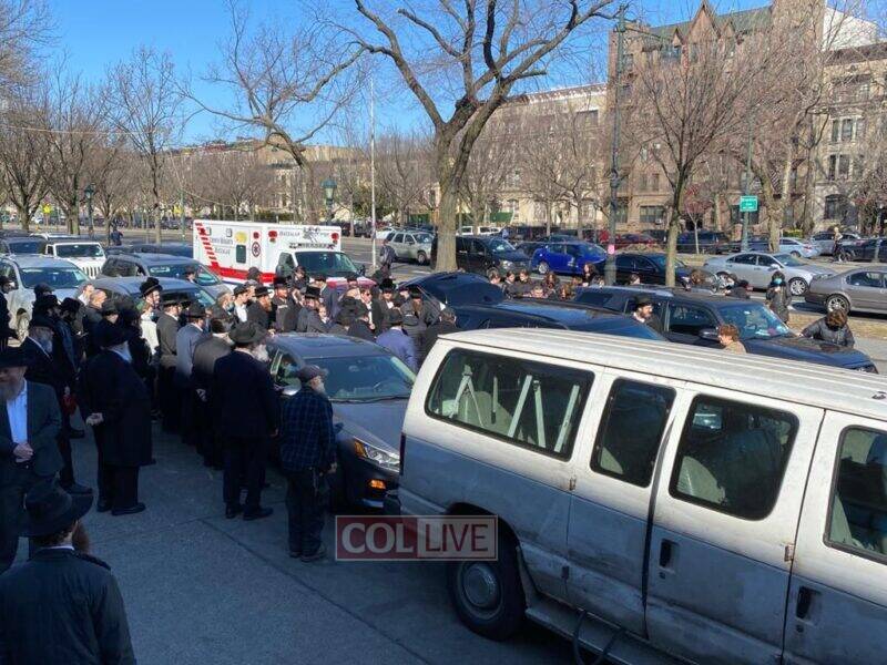 The levaya of R' Berel Zisman, a beloved father and grandfather who survived the Holocaust and resident of North Miami Beach, Florida, passed by 770 Eastern Parkway on the way to burial at Montefiore Cemetery. Photos