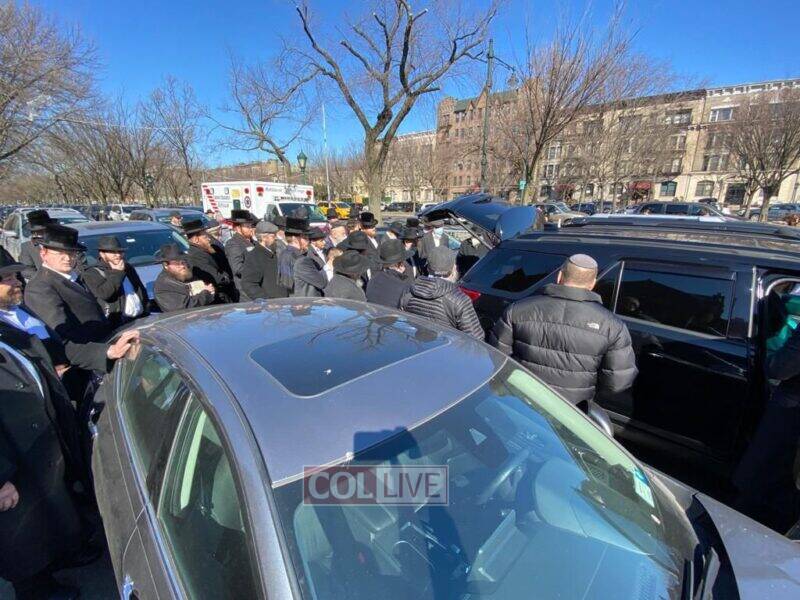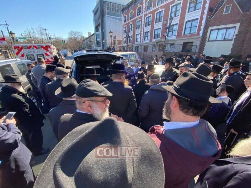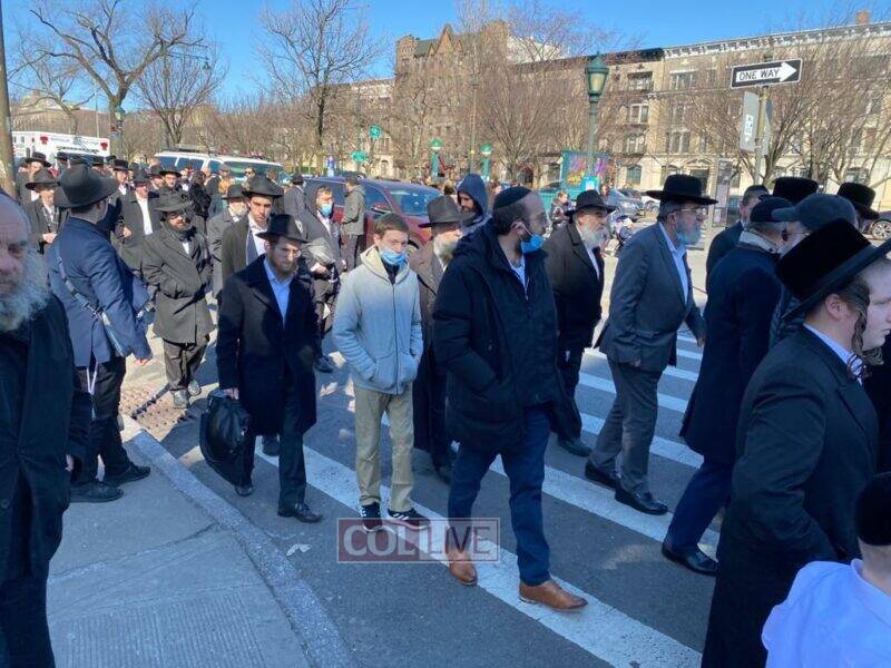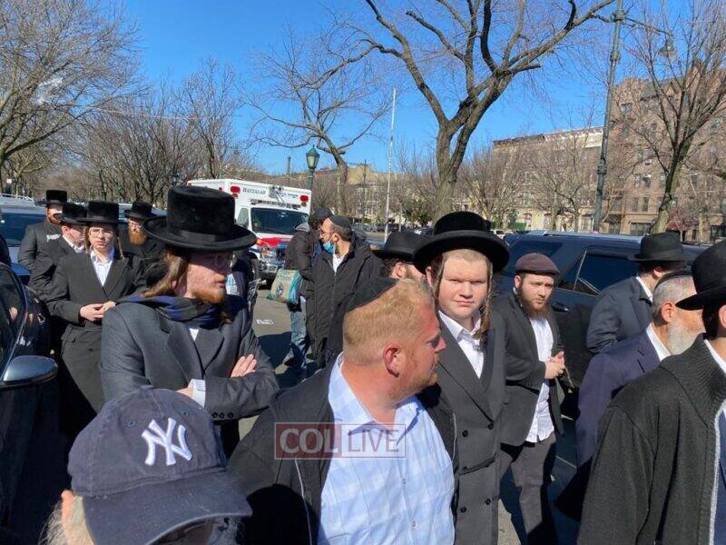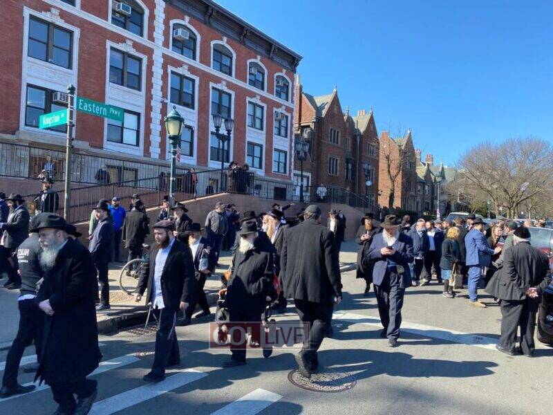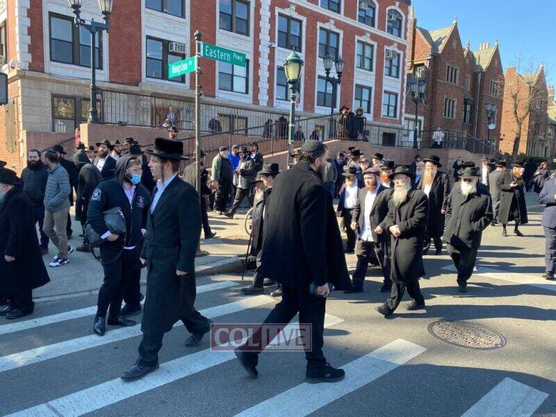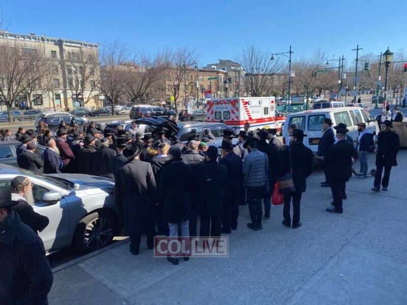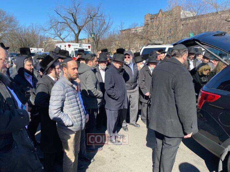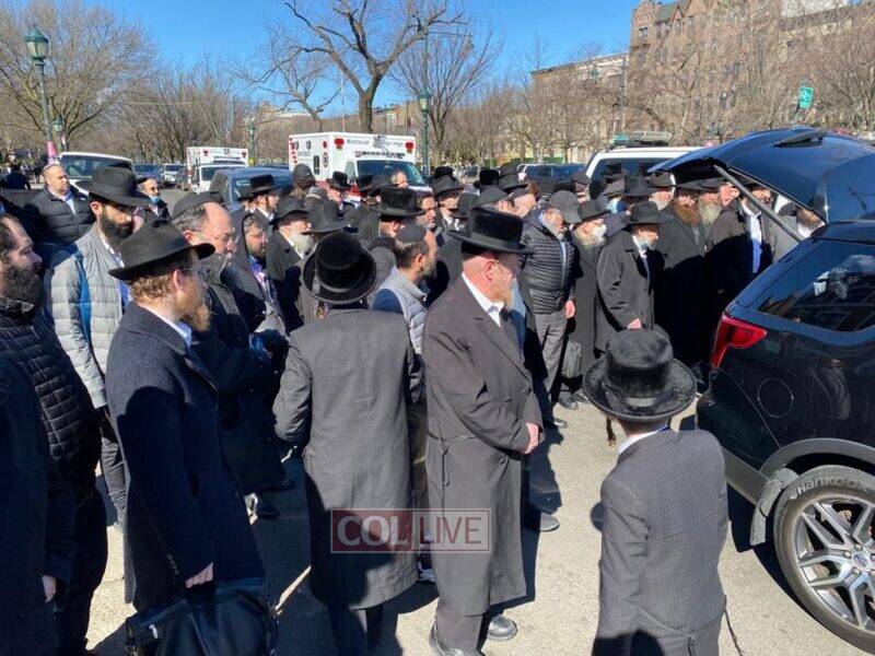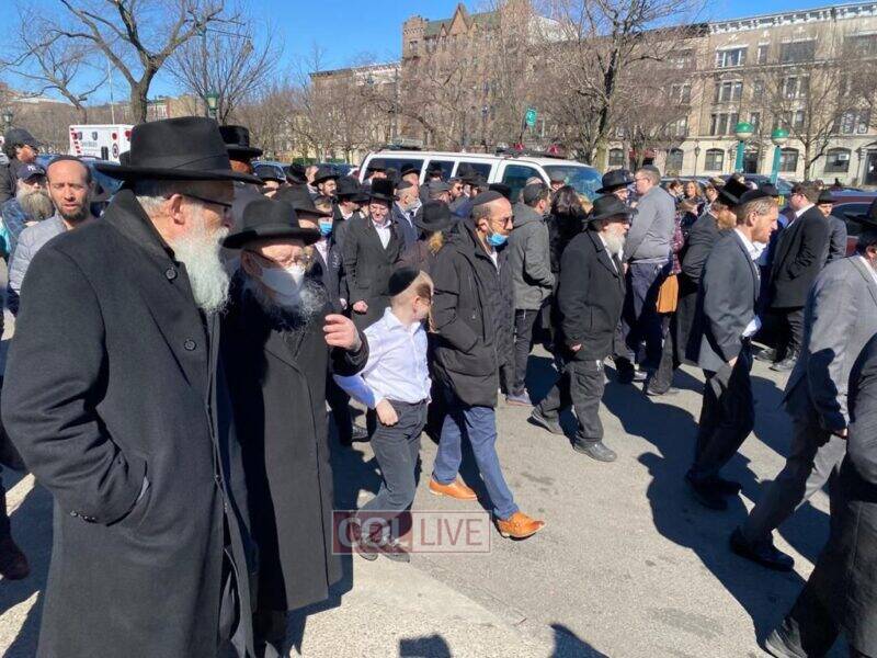 The levaya of R' Berel Zisman, a beloved father and grandfather who survived the Holocaust and resident of North Miami Beach, Florida, passed by 770 Eastern Parkway on the way to burial at Montefiore Cemetery. Photos