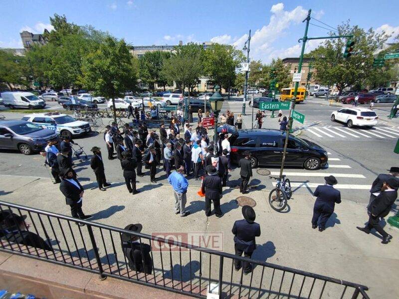 The Levaya of R’ Hirschel Pekkar, a renowned silversmith and longtime Crown Heights resident, passed by 770 Eastern Parkway on Friday. Photos