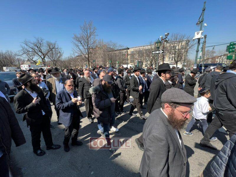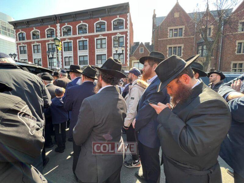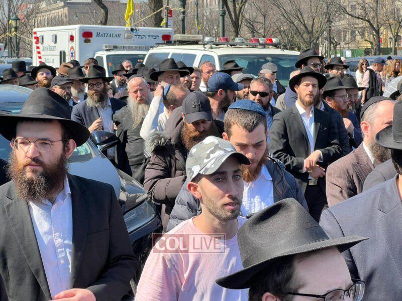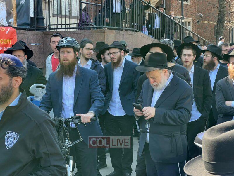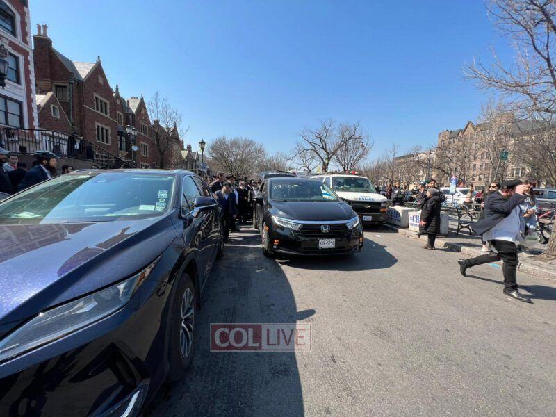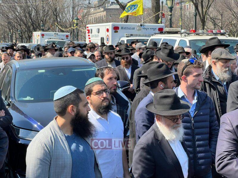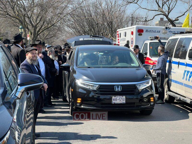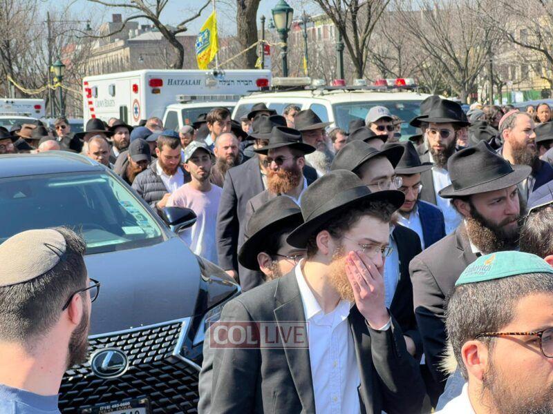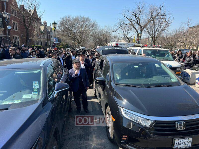The Levaya of Rabbi Menachem Mendel Okunov, the Director of the Yeshiva and Camp of FREE organization who devoted his life to the Rebbe's Shlichus, passed by 770 Eastern Parkway on the way to burial at Montefiore Cemetery in Queens. Photos, Video
