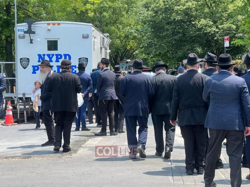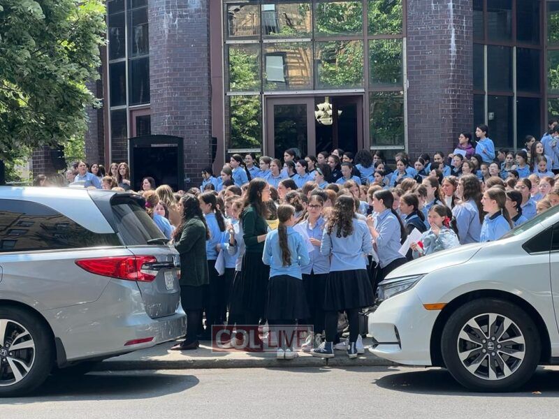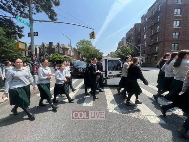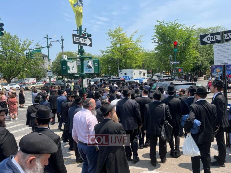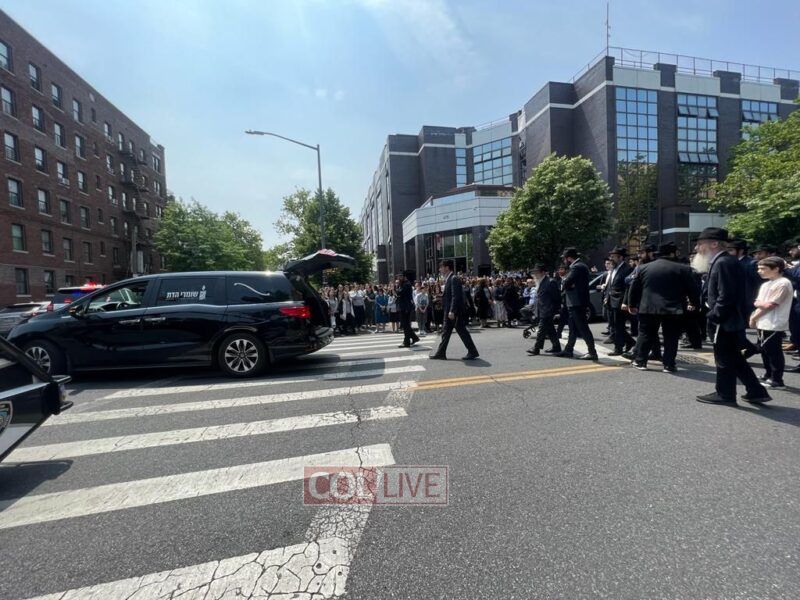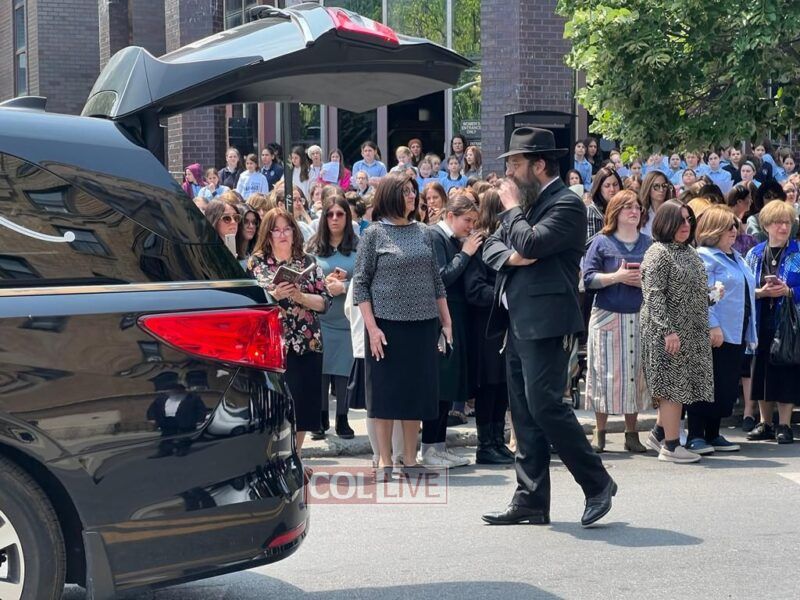 The Levaya of Mrs. Ratza (Ray) Schildkraut obm, matriarch of a large Chabad family who was a longtime beloved teacher, passed by Bais Rivkah school, where she taught for over 40 years, before passing by 770 Eastern Parkway.