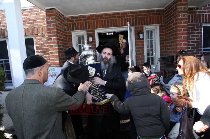 At a ceremony at the home of Rabbi Zalman and Chani Wolowik, shluchim in the Five Towns, family members and friends filled in the scroll’s final letters before parading in the town’s streets to the Chabad Center.