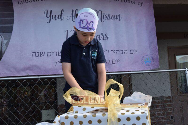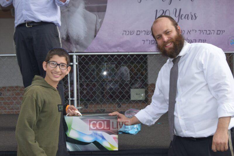 Last year LHA set of goal of learning 7,000 lines of Tanya Bal Peh, which they did. This year a goal of 10,000 lines of Tanya was set, and the school smashed that goal. During the rally, together with Morah Margie, Program Director and Tzivos Hashem Base Commander, the students opened their gift to the Rebbe.