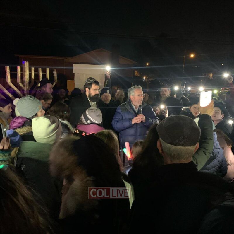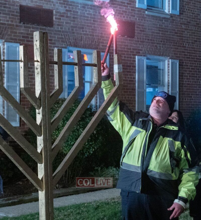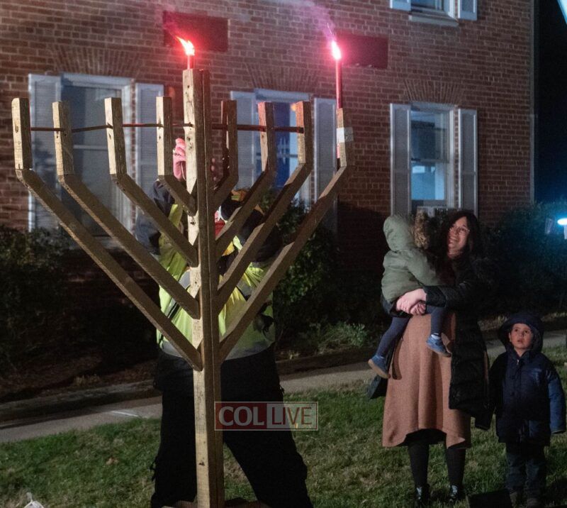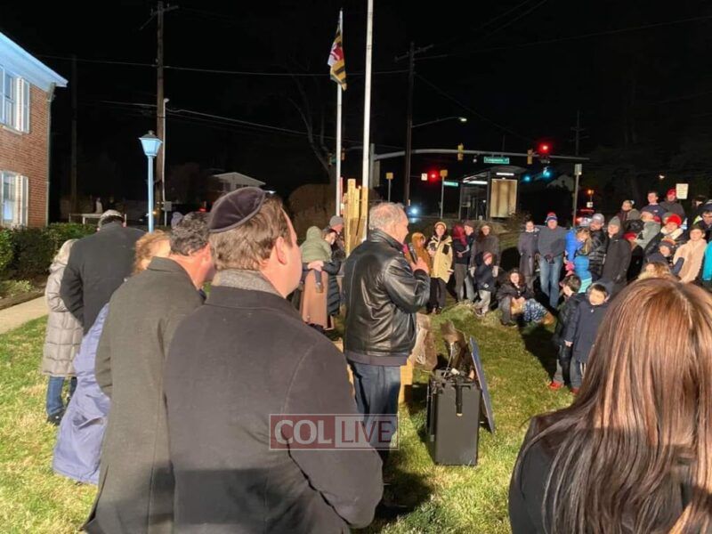 Last minute notices were sent out and interest spread instantaneously. Elected officials and community and faith leaders from all over the county, came together in an incredible show of unity, solidarity, and optimism. In an inspiring Menorah lighting that took place just 24 hours after the graffiti was discovered, many hundreds gathered to proudly celebrate their Jewishness and bring in the joyous holiday. The gathered crowd heard words of inspiration from Rabbi Geisinsky as well as many community leaders, these included County Executive Marc Elrich, Delegate Marc Korman, Councilmember Andrew Friedson, Councilmember Kate Stewart, Superintendent of Montgomery County Public School Dr. Monifa McKnight, Montgomery County Chief of Police Marcus Jones, Alan Ronkin from the AJC, Ron Halber from the JCRC, among other community and faith leaders.
