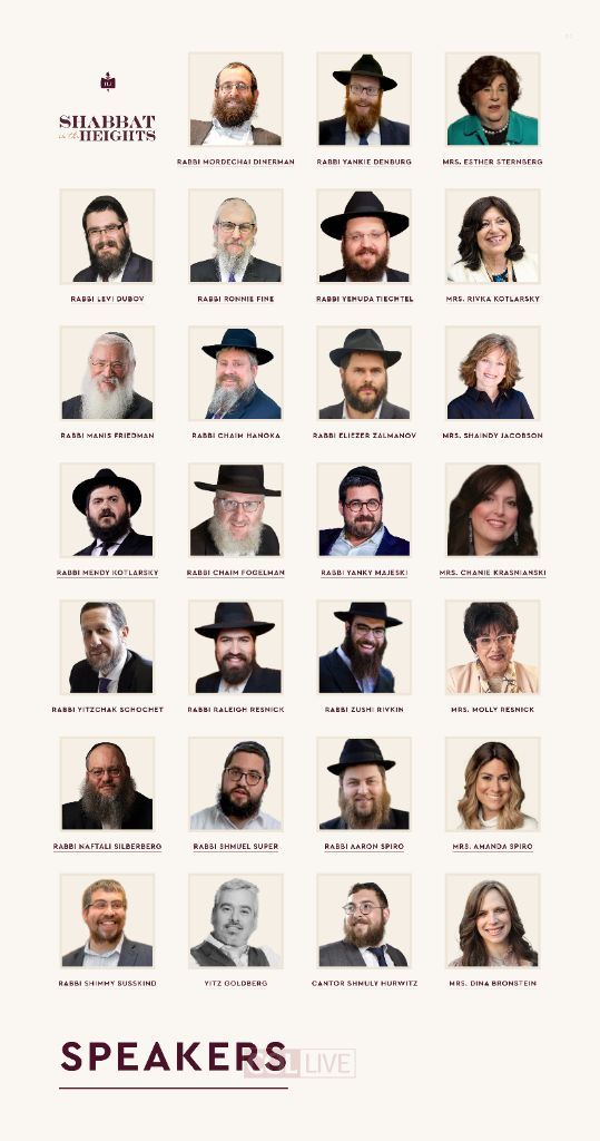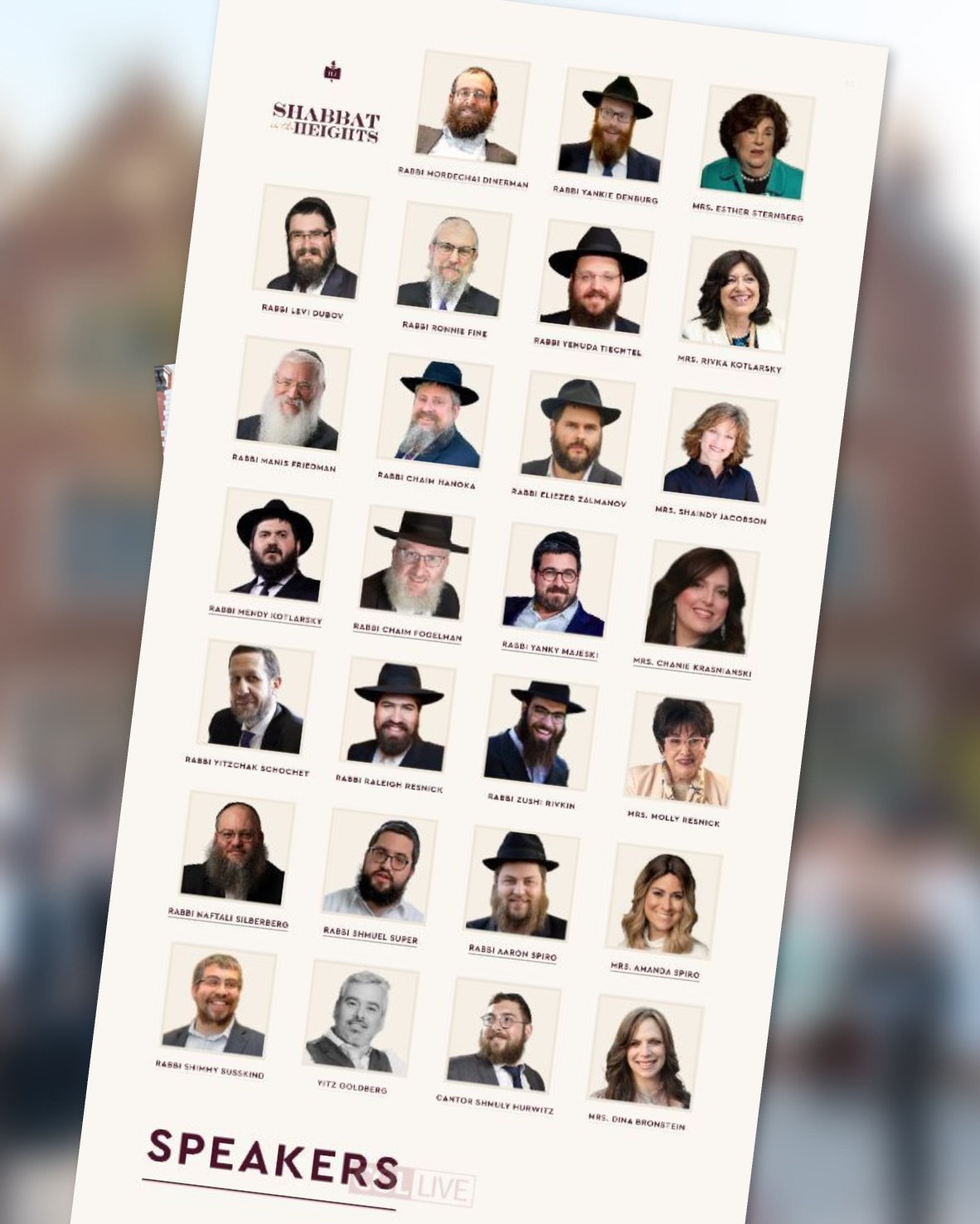 Shabbat in the Heights, organized by the Rohr Jewish Learning Institute (JLI), is set to draw 500 participants from more than 27 cities worldwide for a three-day program culminating on Sunday, 16 Iyar, May 3, featuring 25 speakers and personalities.