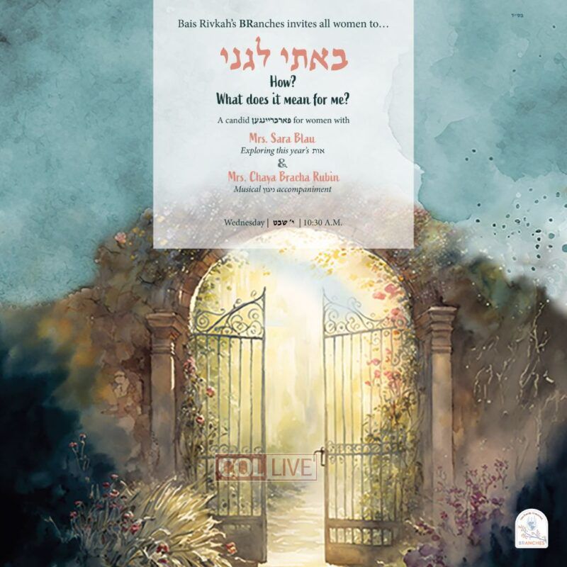 Join Mrs. Sara Blau and Mrs. Chaya Bracha Rubin on Wednesday, 10:30 am.
