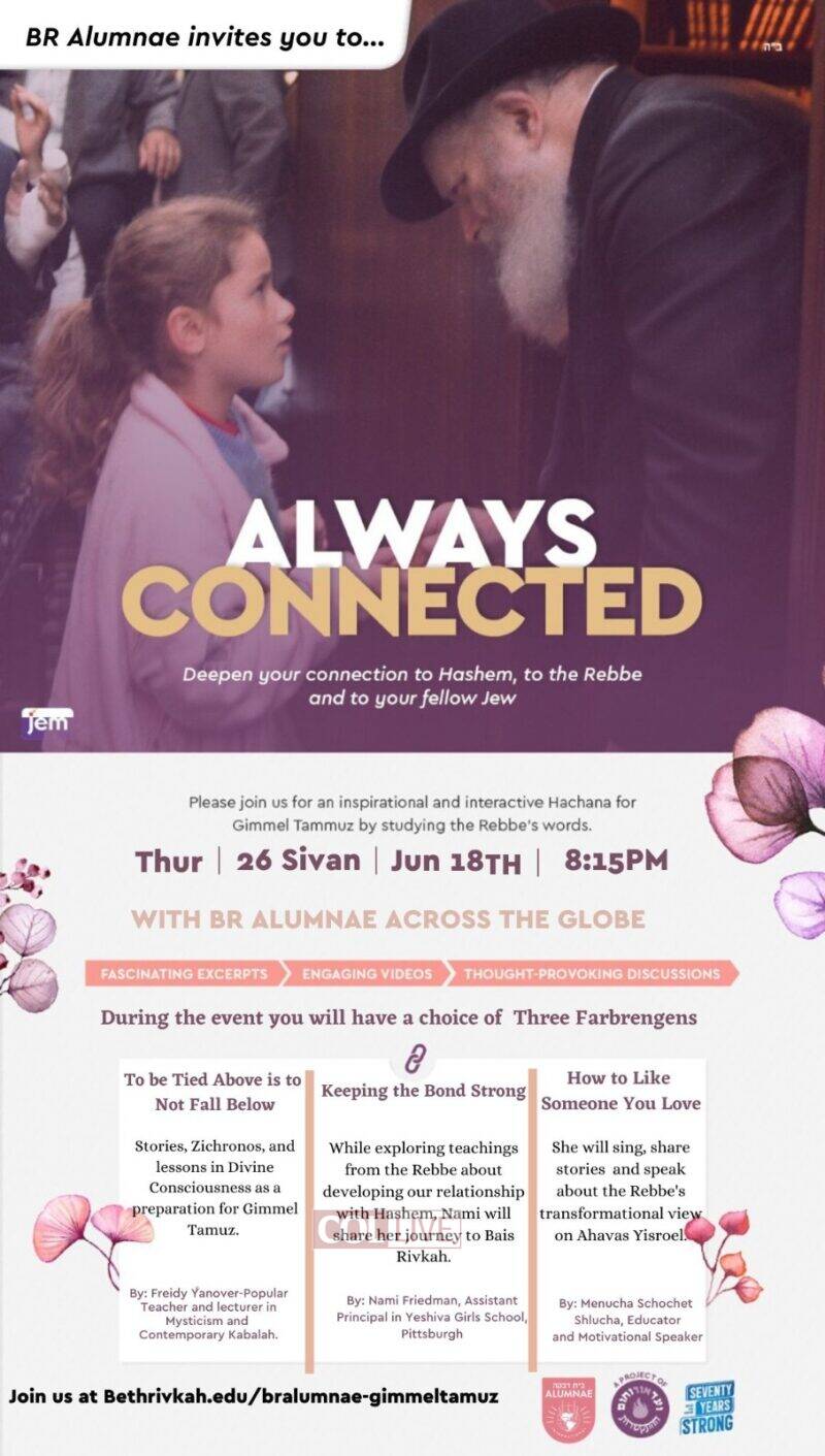 “Always Together,” is a virtual Farbrengen to deepen your connection to Hashem, the Rebbe, and our fellow Jew, in preparation for Gimmel Tammuz.