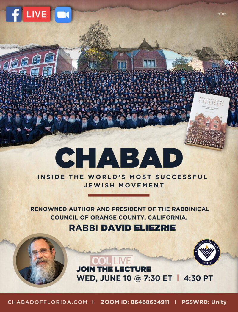 Tonight, join a live event with Rabbi David Eliezrie, author of “The Secret of Chabad”, who will offer his very first feature Zoom lecture on “Chabad: Inside the world’s most successful Jewish movement.”