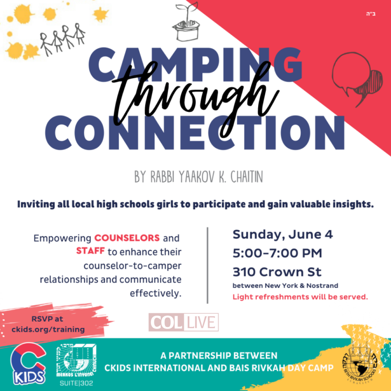 The training session will take place on Sunday, June 4th, from 5 PM to 7 PM at Bais Rivkah Crown St (310 Crown St between New York & Nostrand Aves). Attendance is highly encouraged for all local New Yorkers, and light refreshments will be provided. Efforts are being made to arrange a live recording for out-of-town counselors, ensuring they can also benefit from Rabbi Chaiton’s wisdom and insights.