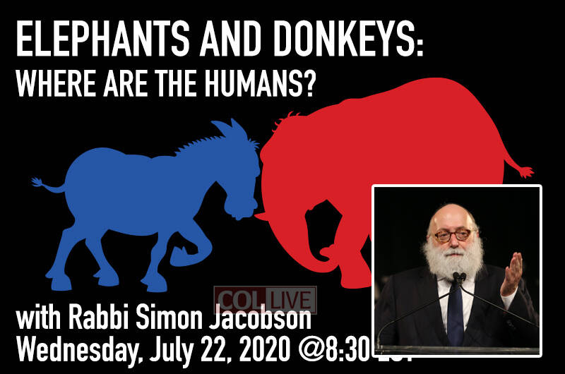 Please join Rabbi Simon Jacobson in this eye-opening talk, as he finds insights and direction from a most surprising place: the very origins of the political parties association with the donkey (Democrats) and elephant (Republicans). What began in 1828 as an insult to Andrew Jackson, turned into a “proud” symbol of the Democratic party.