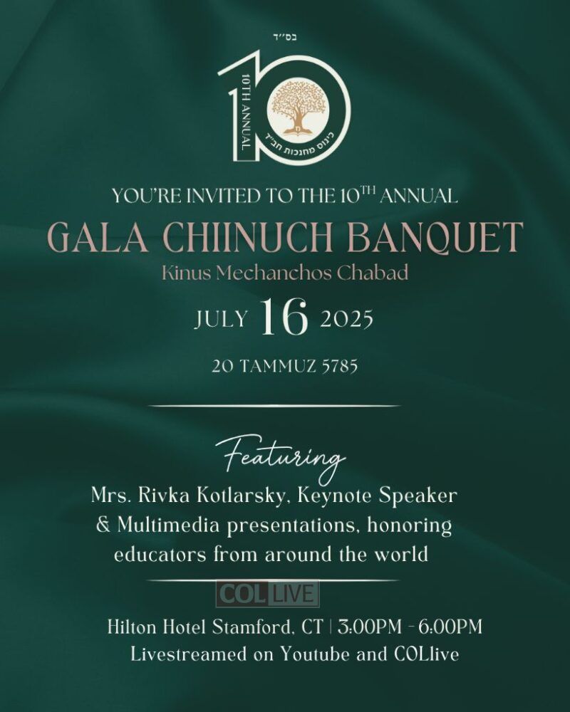This year’s banquet, which will be held on the second day of the 10th Annual Kinus in Stamford, Connecticut (July 15-16, 19-20 Tammuz), promises to be especially memorable.