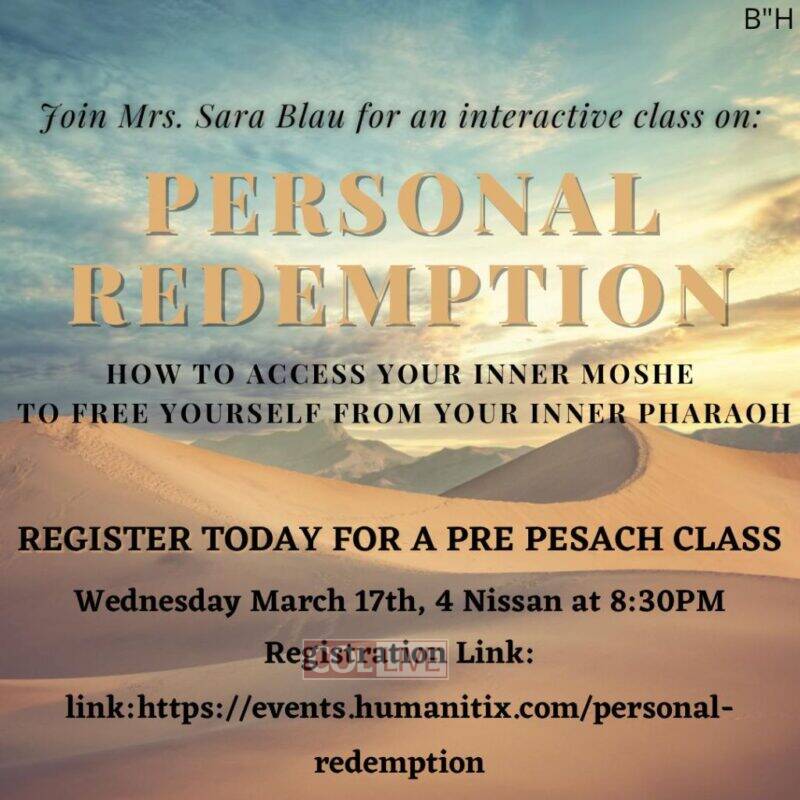 Join Mrs. Sara Blau for an interactive workshop, where you can learn how to coach yourself and shift from fear to freedom and so much more. Come learn bit by bit how you can tune into your inner dialogue and come out stronger on the other side!