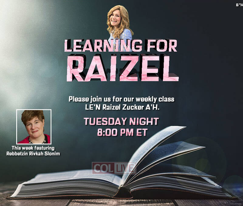 A new weekly class founded in memory of Raizel Zucker OBM will take place tonight.