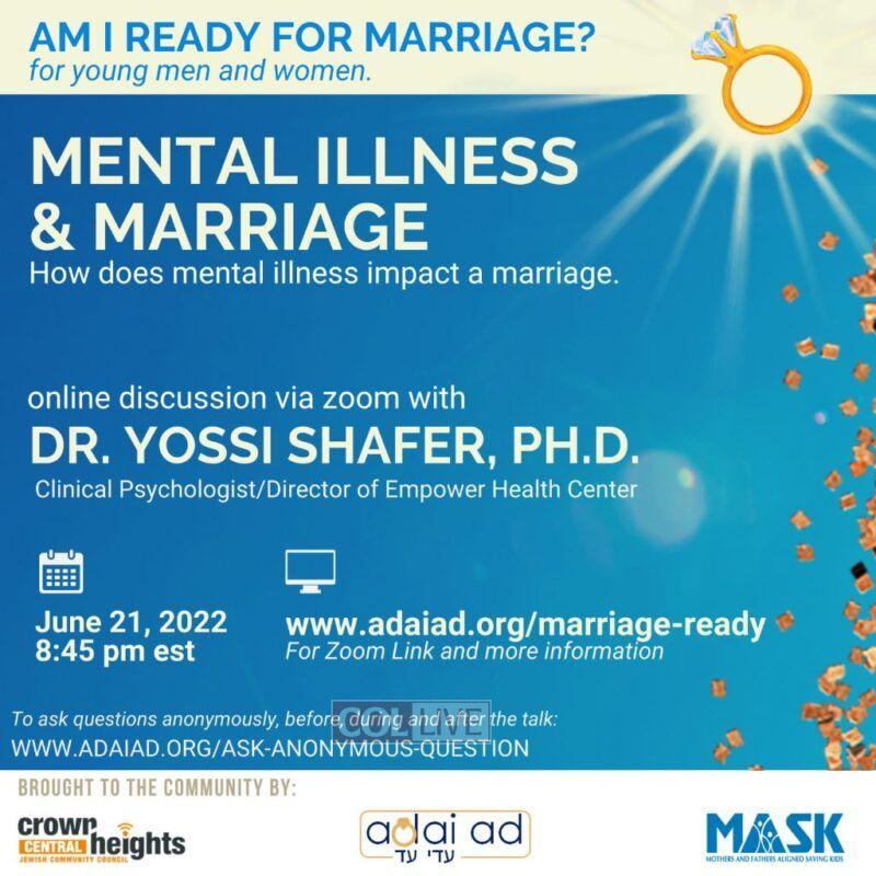 From Adai Ad’s “Am I ready for marriage?” series: Mental Illness & Marriage with Yossi Shafer, PhD.