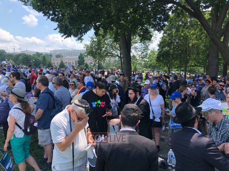 Chabad Shluchim from Washington, DC, Maryland and Northern Virginia, along with Chabad bochurim, were seen assisting participants of the rally with doing a Mitzvah and putting on Tefillin, organized by American Friends of Lubavitch and Rabbi Yitzi Ceitlin of Chabad East DC.