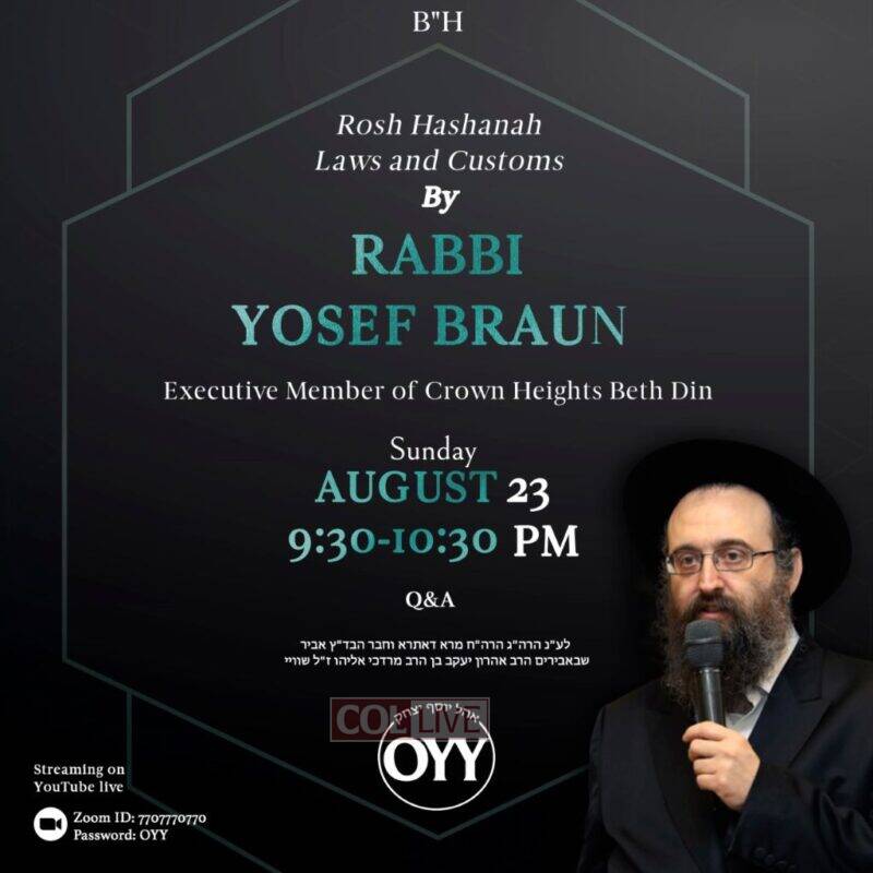 Watch a replay: Rabbi Yosef Braun, member of the Crown Heights Beis Din, gives a comprehensive review of the practical Halachos and Minhagim of Rosh Hashanah. Video