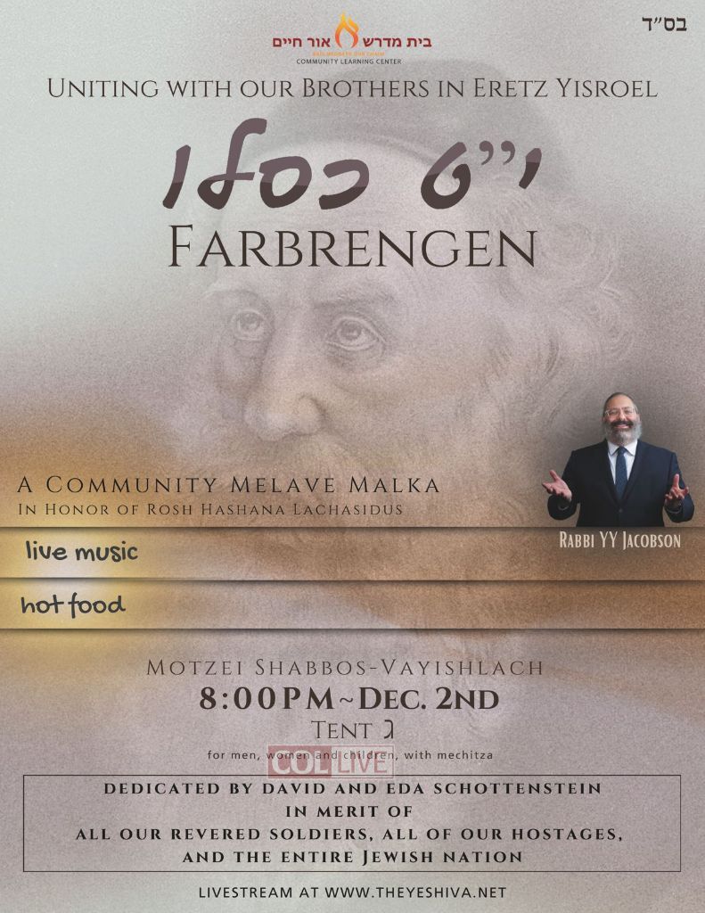 Yud-Tes Kislev Farbrengen With Rabbi YY Jacobson on Motzaei Shabbos, 20 Kislev, 5784, December 2, 2022, 8:00 pm ET, at the Ohr Chaim Shul in Monsey, NY.