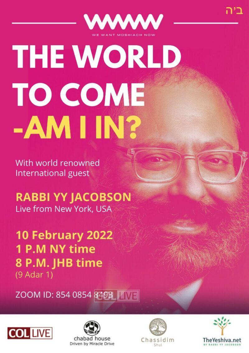 Rabbi Jacobson has a unique way of making even the most difficult concepts come to life, so join him, be inspired and make the World To Come, come alive for you too.