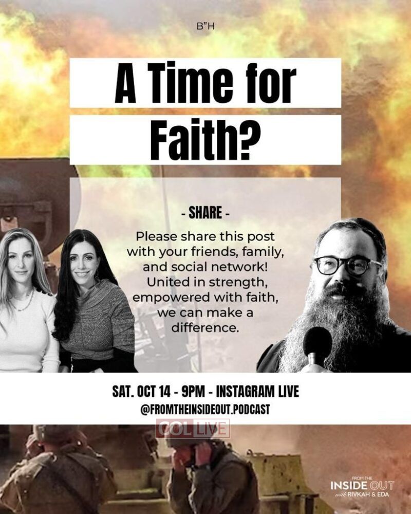 Live at 9:00 PM ET: A time for faith and moving forward with Rabbi Shais Taub, with Rivkah Krinskyand Eda Schottenstein of From the Inside Out Podcast. Full Story