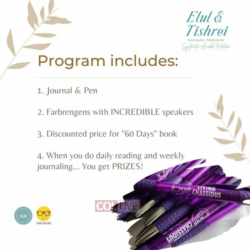 Through daily readings from Rabbi Simon Jacobson’s “60 Days” book, bi-weekly farbrangens and prizes, you’ll positively transform your Elul & Tishrei experience like never before.