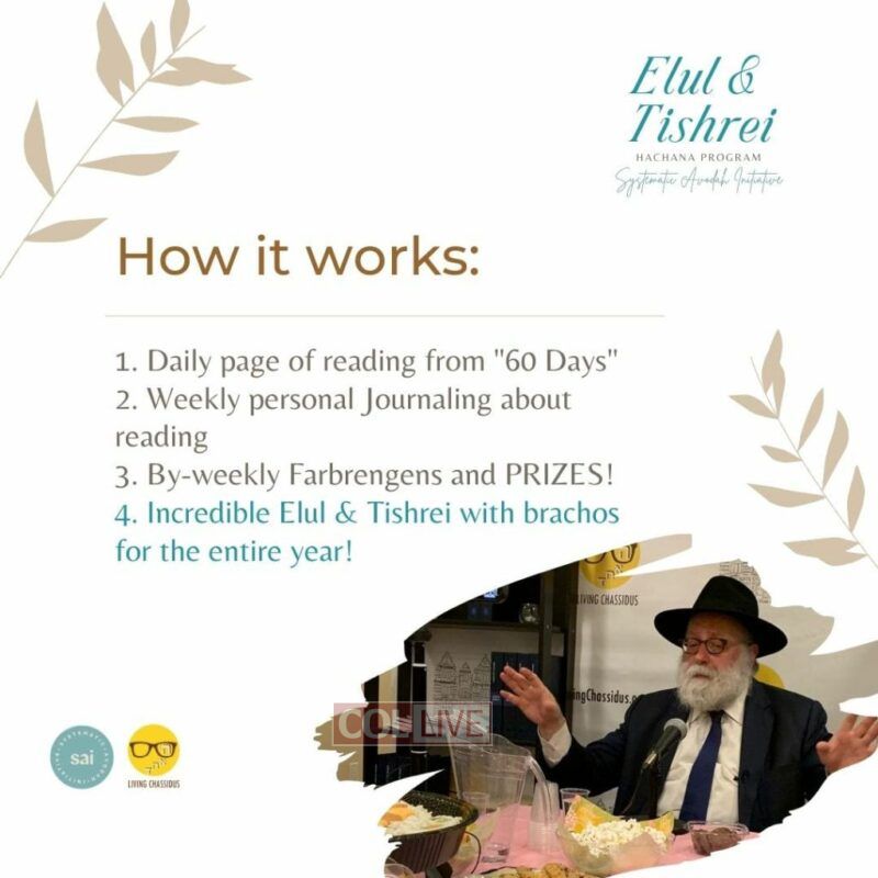 Living Chassidus’ SAI Elul & Tishrei is more than personal growth. It’s a supportive community. With a decade of experience, Living Chassidus enriches every aspect of life through shiurim, farbrengens, and insightful speakers on health, finances, and more.