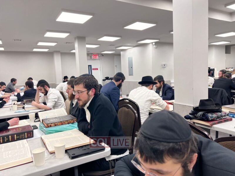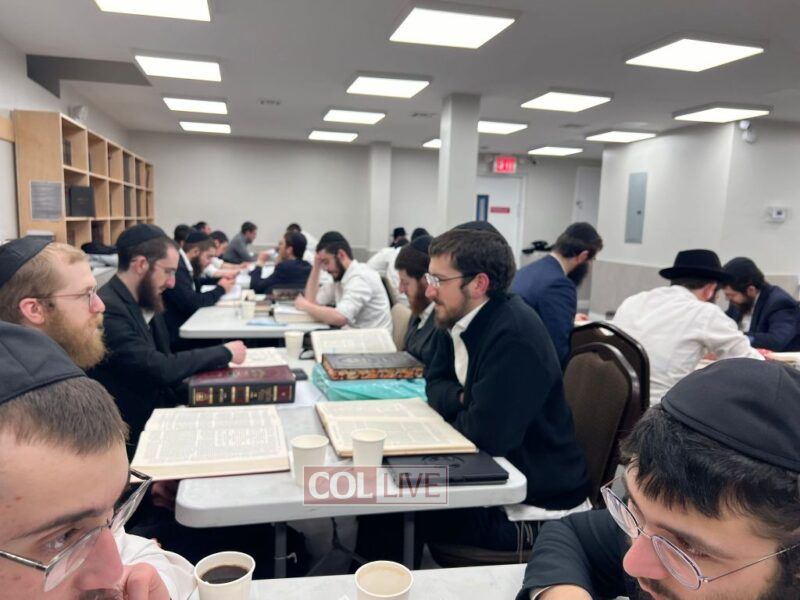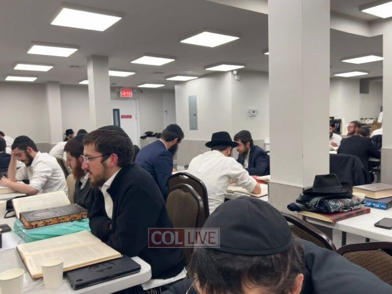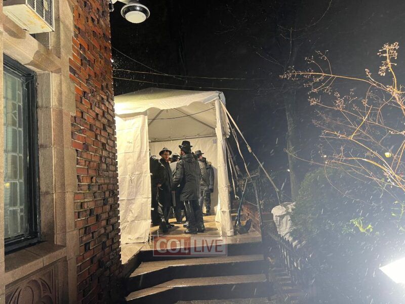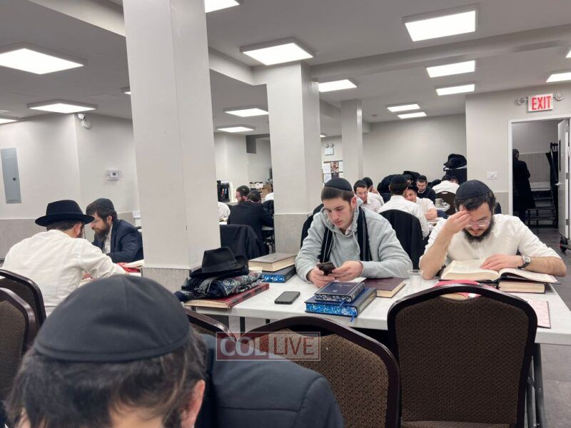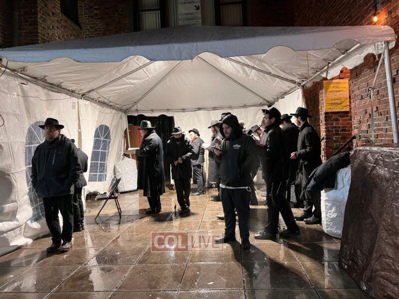 On Tuesday, a tent that was put up in the courtyard of 770 for a wedding was conveniently used for many to daven amid the rainy weather. Bochurim found open doors in local shuls and at Yagdil Torah’s Heichal Halimud to continue their studies uninterrupted.