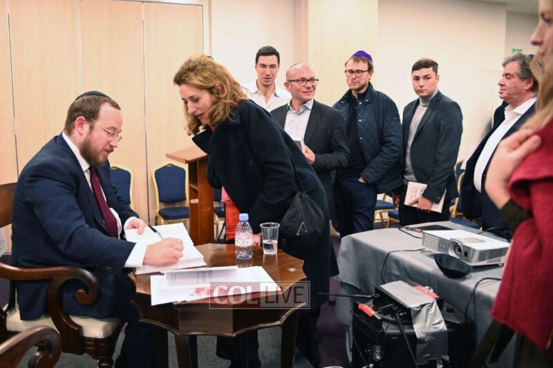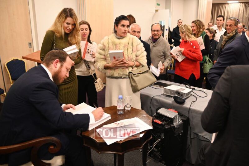 The evening concluded with a book signing, as many in the audience lined up to have their books signed and share words of congratulation with their Rabbi.