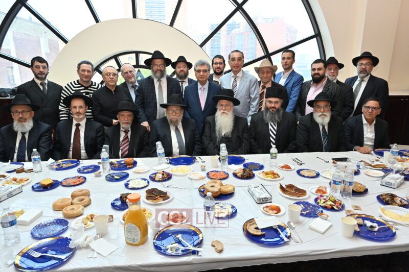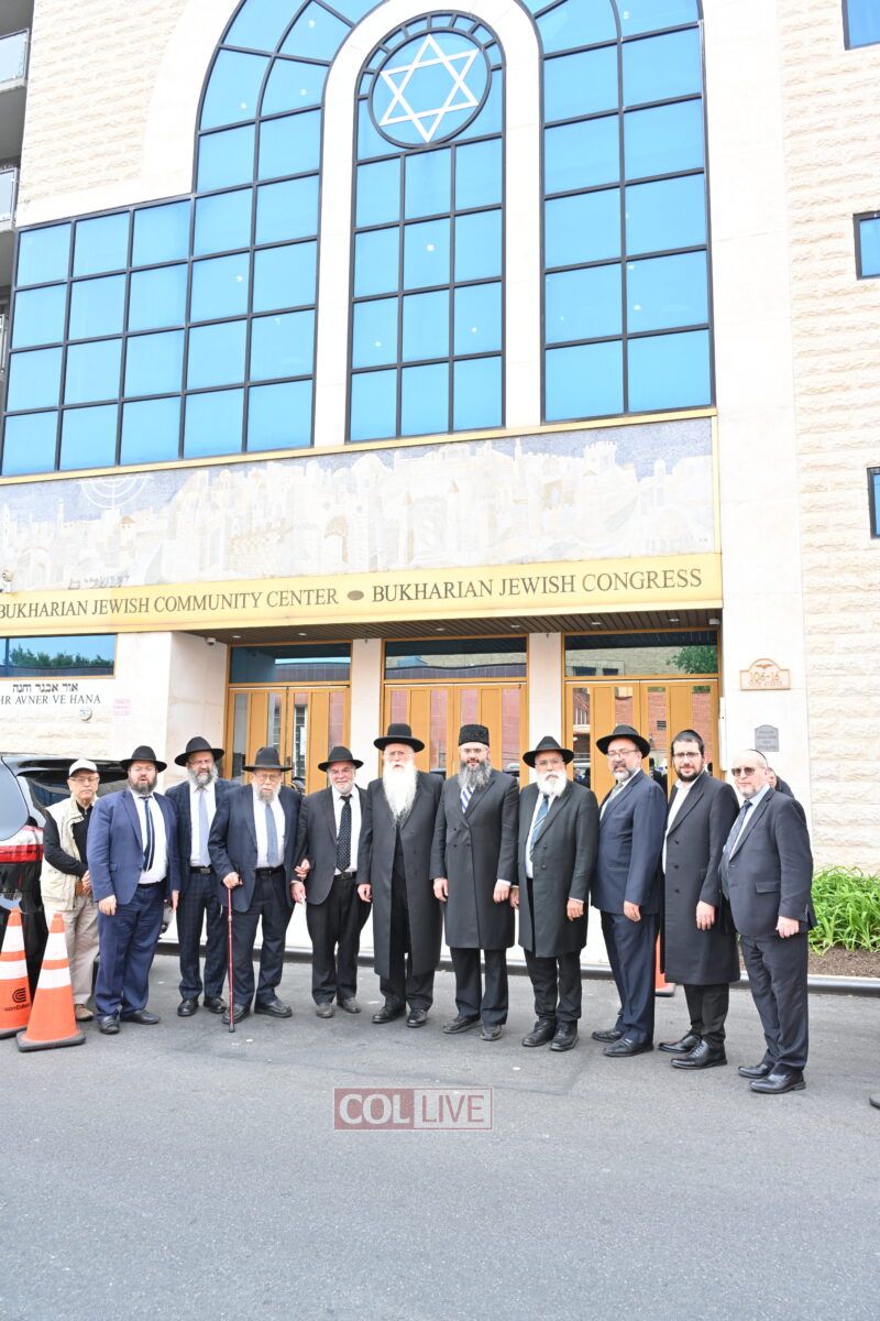 He commenced his visit with Shacharis at the magnificent Bukharian shul in the heart of Queens, and also delivered an eloquent Torah class to the attendees. Subsequently, he graced a festive breakfast in his honor, attended by the local rabbis and community leaders, as well as Rabbi Peretz Steinberg, the eminent Av Beis Din of Queens, who—despite his advanced age—also attended the event.