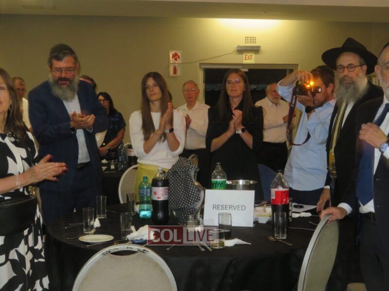 Besides a delicious catered dinner, outstanding entertainment was provided by Rabbi Goldman’s son Chazan Shmuly Goldman and his two sons Menachem and Shimon who sang solos and duets, including the Acheinu song for the hostages.