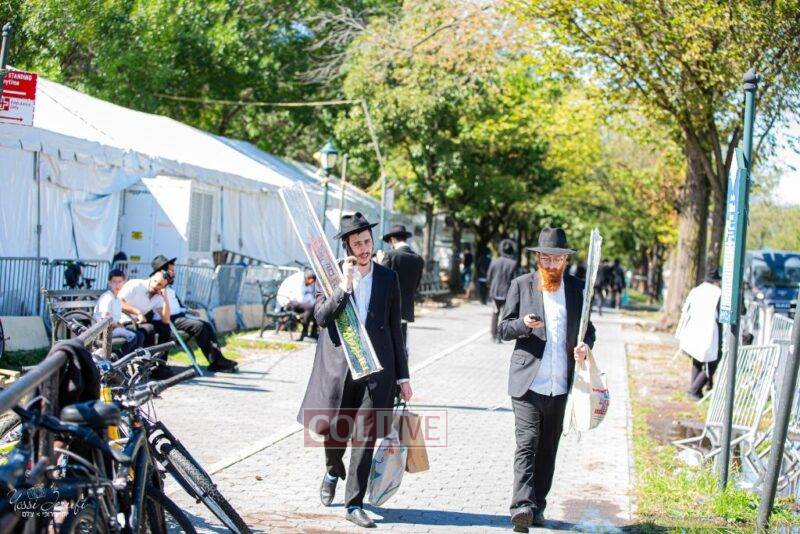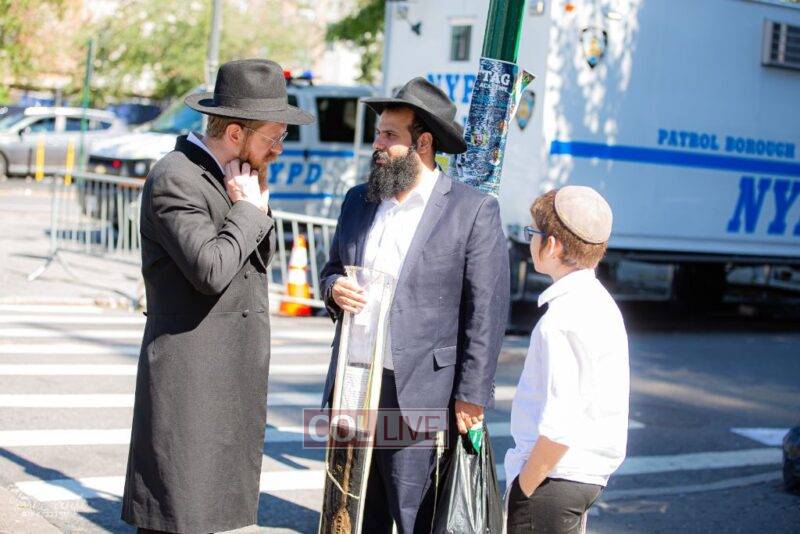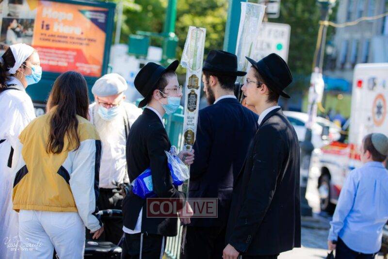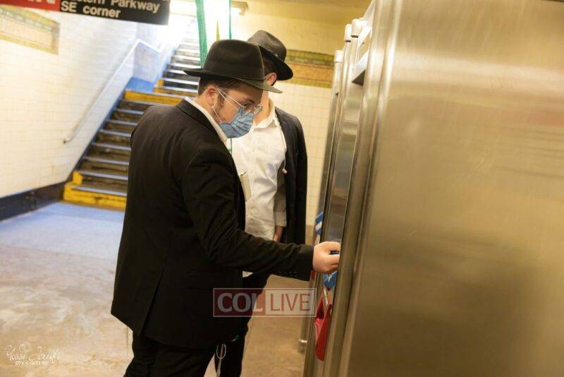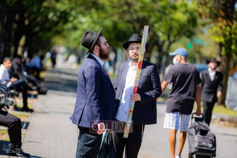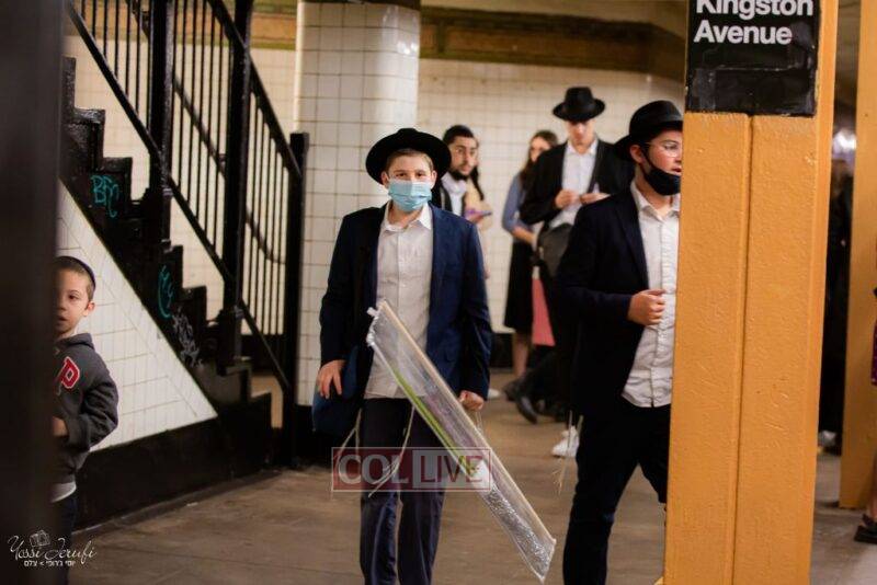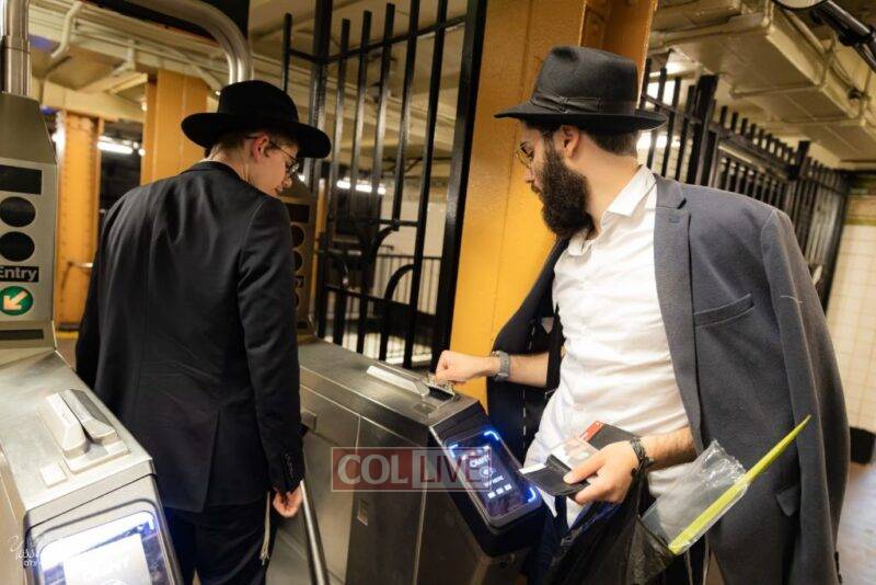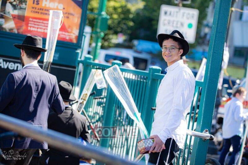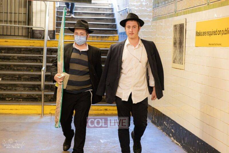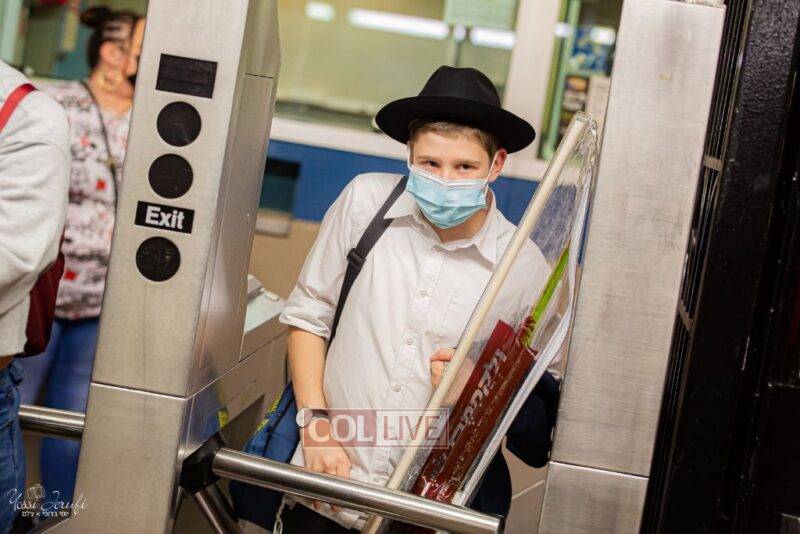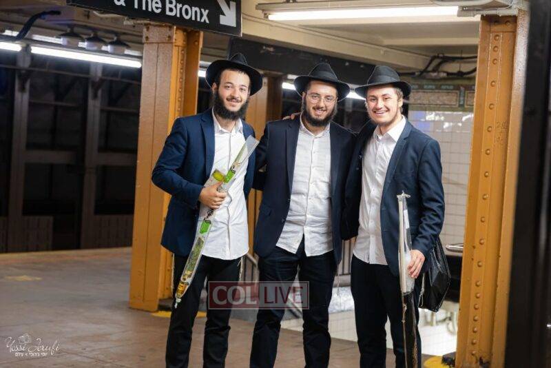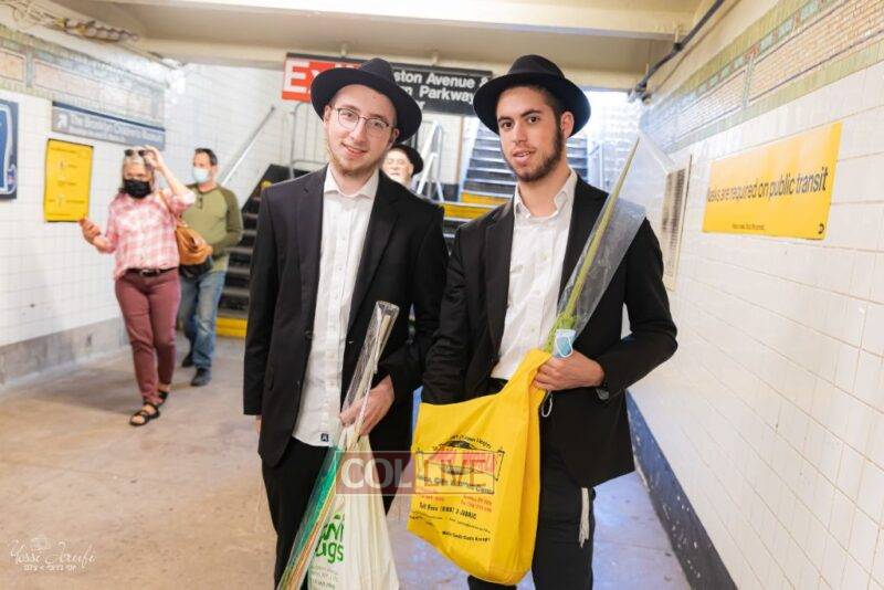 Chassidim and bochurim were seen leaving from Crown Heights during Chol Hamoed Sukkos to merit fellow Jews in Manhattan and other areas around New York with blessing the lulav and esrog. Photos