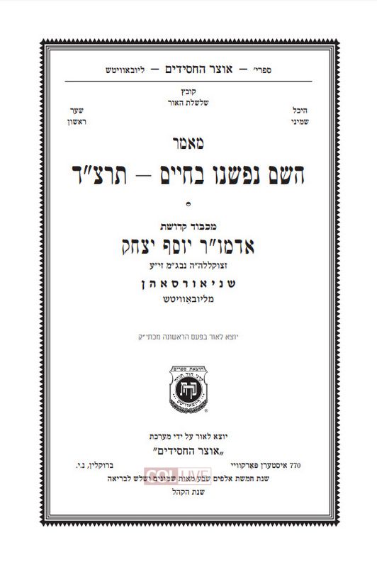 The publication of the Maamar was sponsored in merit of Reb Yosef Yitzchak ben Beila; may the merit of the Maamar’s study throughout the world bring him a speedy recovery.