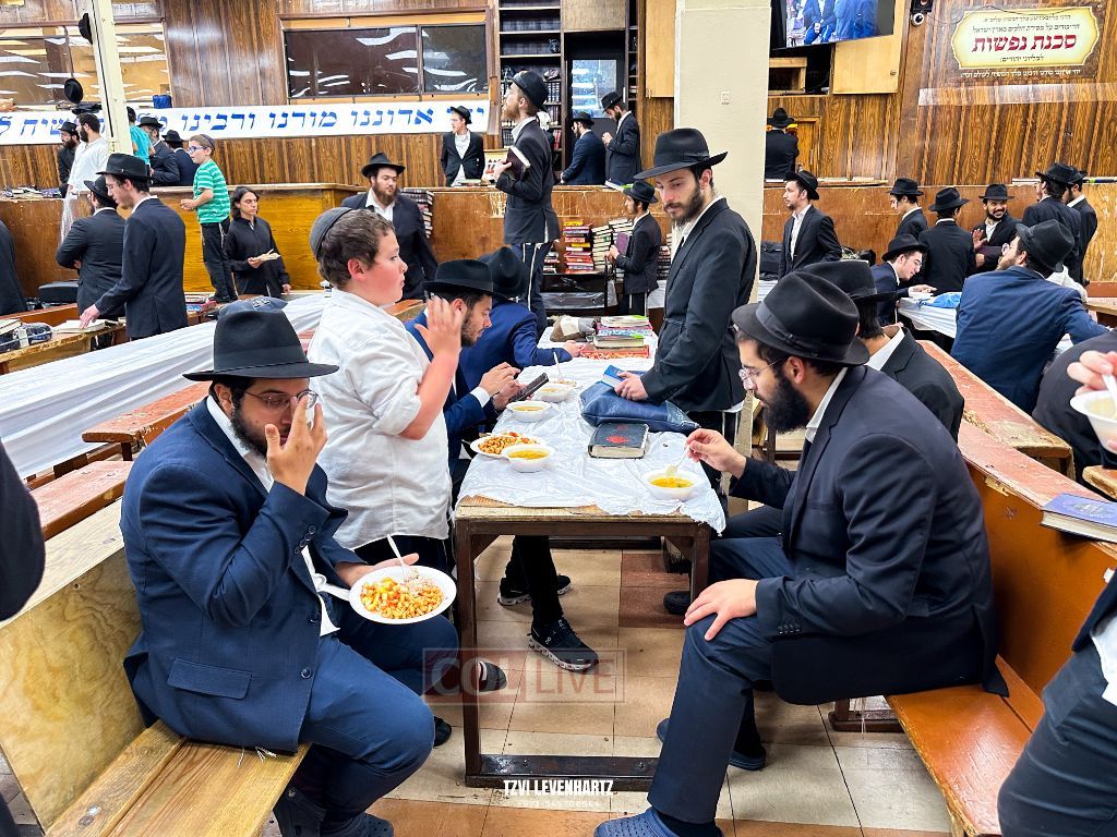 Hundreds concluded the Tisha B'Av fast with Maariv, Havdallah and break fast at 770 Eastern Parkway. Photos