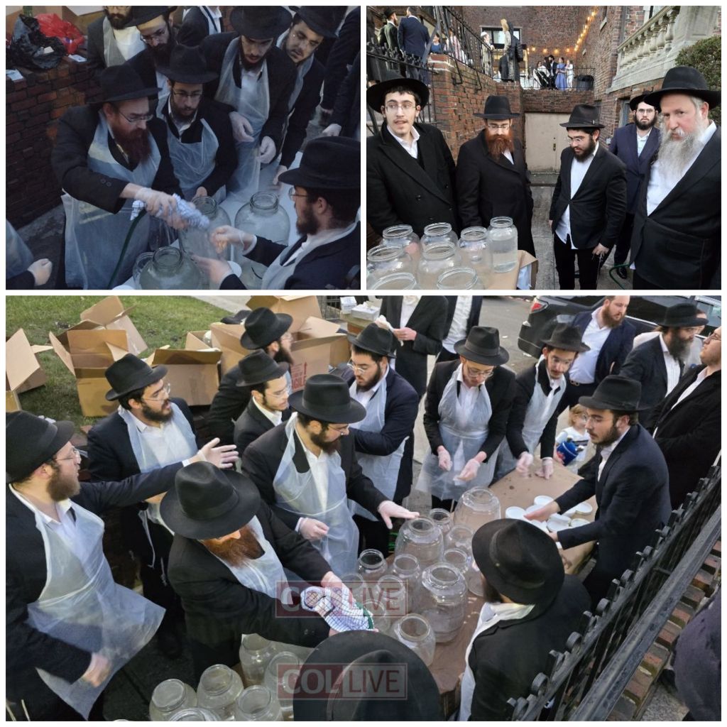 After officiating the sale of Chometz, Rabbi Weinfeld, who is the official Rabbi of the Manhattan Beer Company, assisted Mr. Bergson and his sons in donning Tefillin.