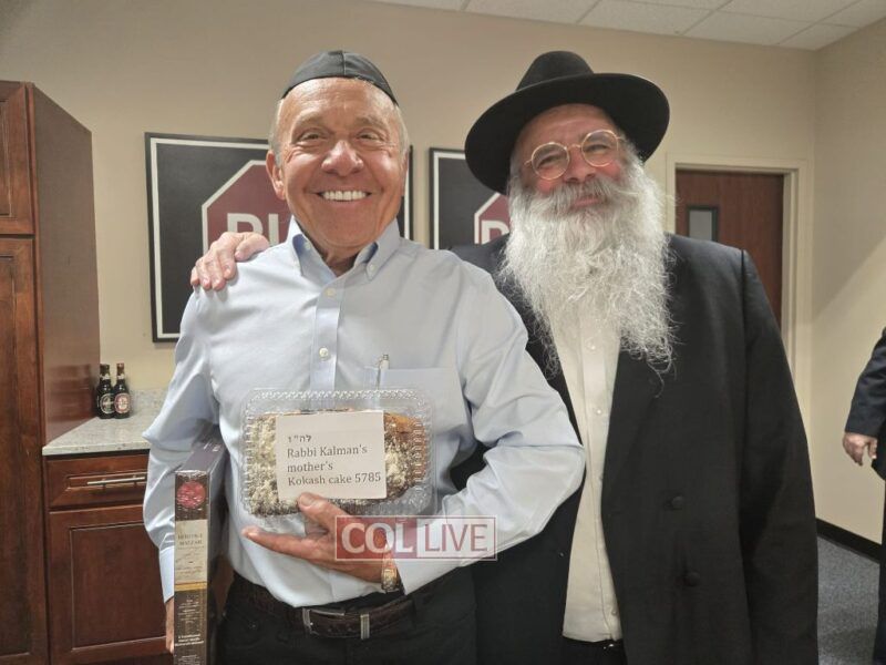 During the warm meeting at the Manhattan Beer offices, Rabbi Kalman Weinfeld presented Mr. Bergson with a homemade Kokosh cake, made with his mother’s special recipe.