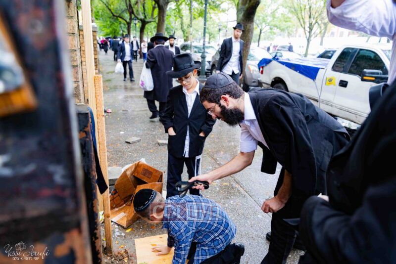 Ahead of Yom Kippur, chassidim and bochurim in Crown Heights kept the routine: Malkos, Mikvah, Mincha and Tzedakah. Photos