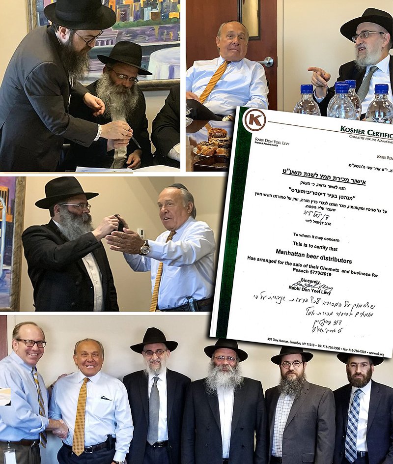 The signing was attended by Rabbi Don Yoel Levy, CEO of OK Kosher, Rabbi Kalman Weinfeld, Rabbi Nosson Sternberg, a businessman from Crown Heights, Rabbi Yakov Teichman from Lakewood, a Rabbi in the OK kosher organization, and Mr. Edward McBrien, the non-Jew who bought the Chometz, and Mr. Simon Bergson.