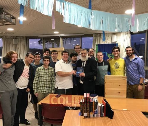 Following the meeting, the bochurim learned the sicha from the Farbrengen marking the 40th anniversary, 16 Kislev, 5729, where the Rebbe acknowledges the many well wishes and spiritual and physical gifts sent to him in honor of the occasion.