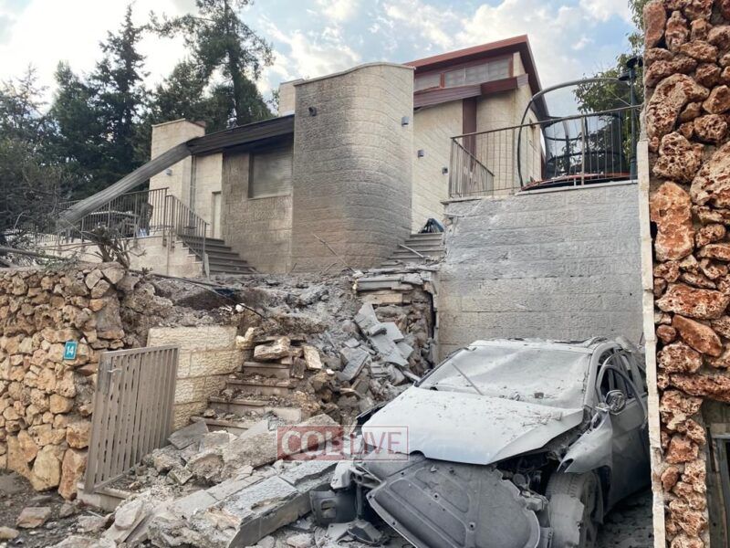 In a town to the northwest of Jerusalem, two people were lightly injured by shrapnel. Volunteer EMT Boaz Armona said: “I arrived first at the scene and saw significant destruction, together with additional first responders I provided medical assistance to two people (a couple) who were lightly injured and were then transported to the hospital for further treatment.”