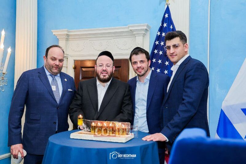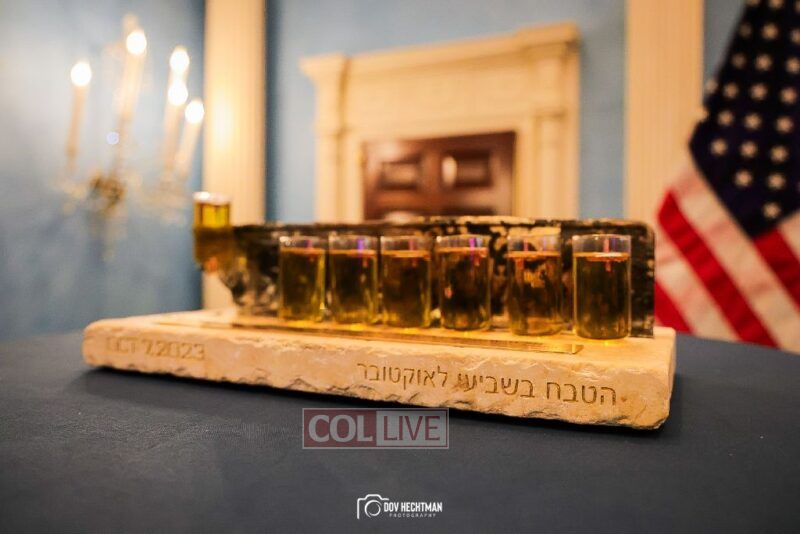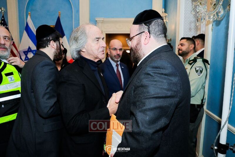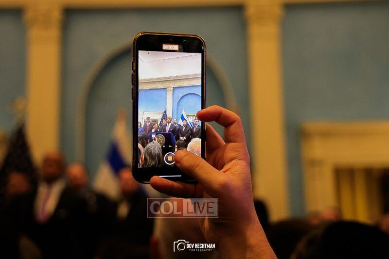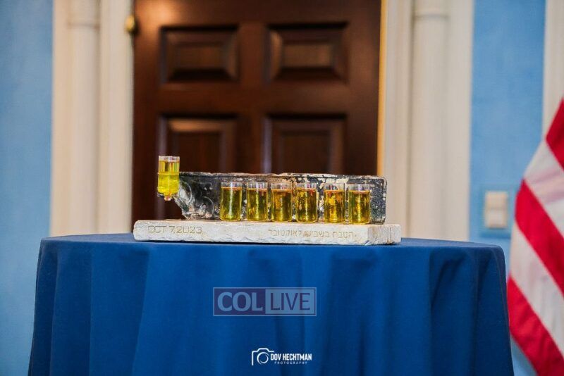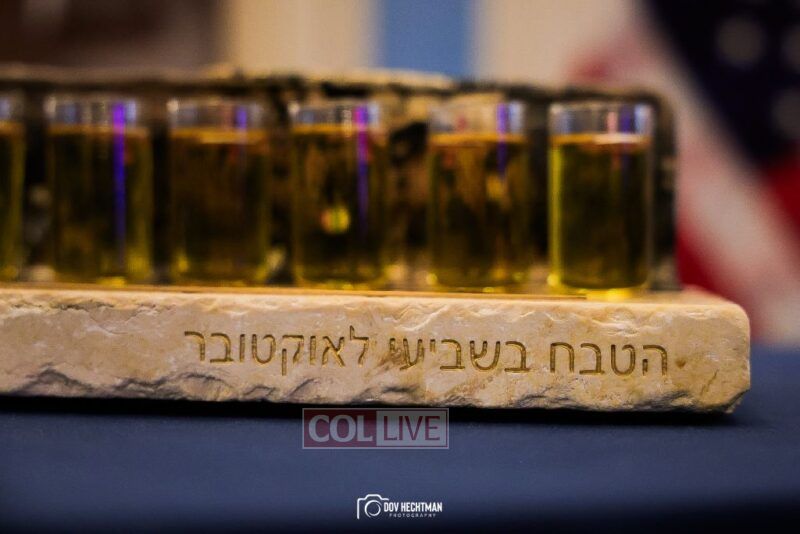 The annual gathering was celebrated with attendees honored with lighting a menorah made of the remnants of a license plate of a car left behind after Hamas’ attack on Israel on Simchas Torah.