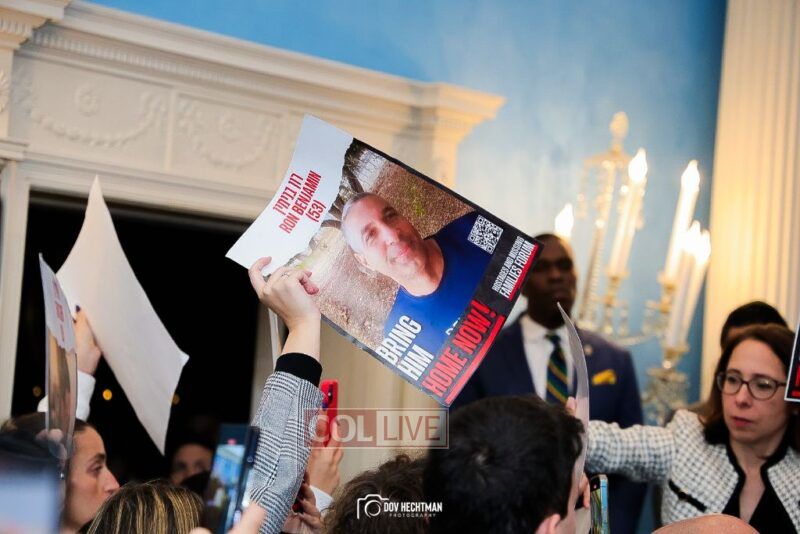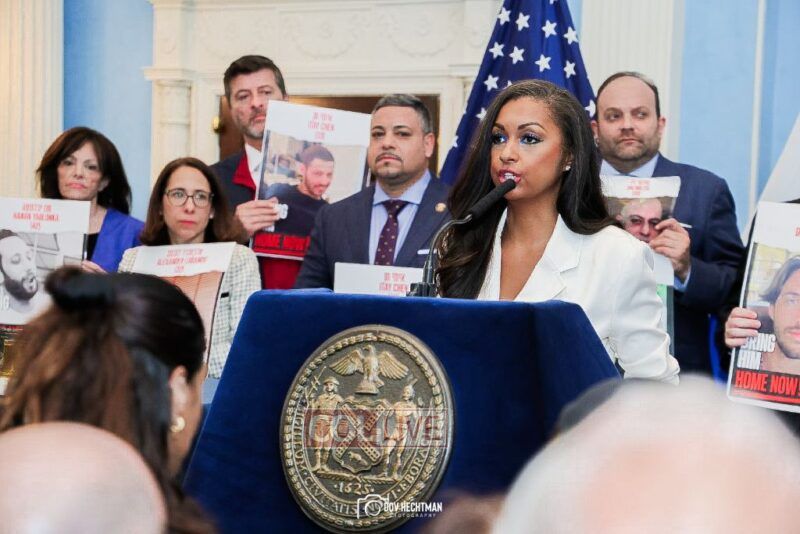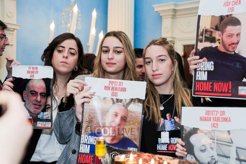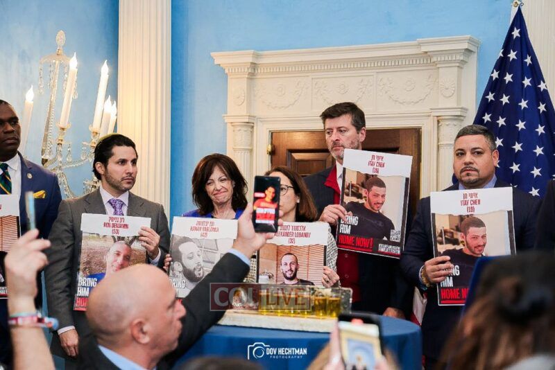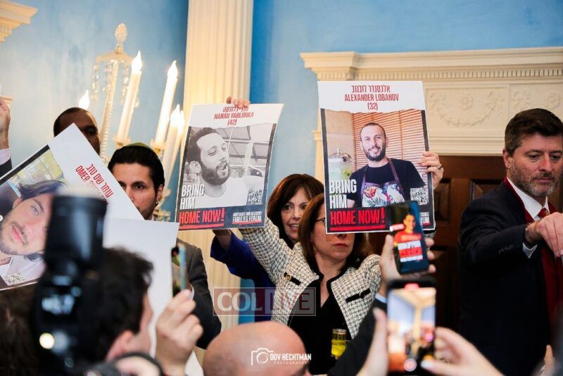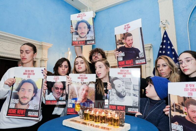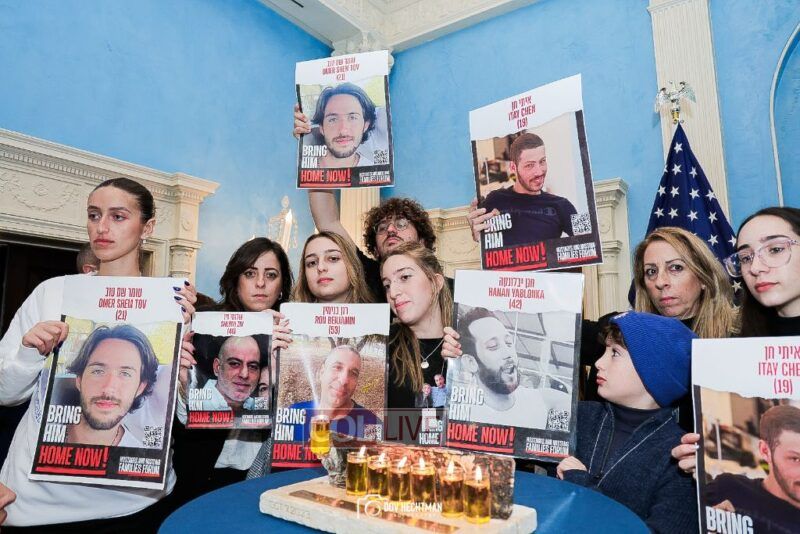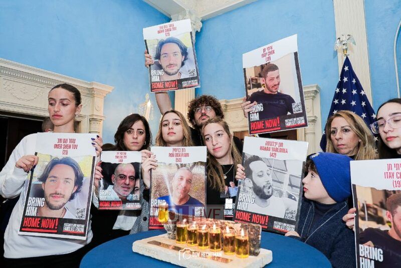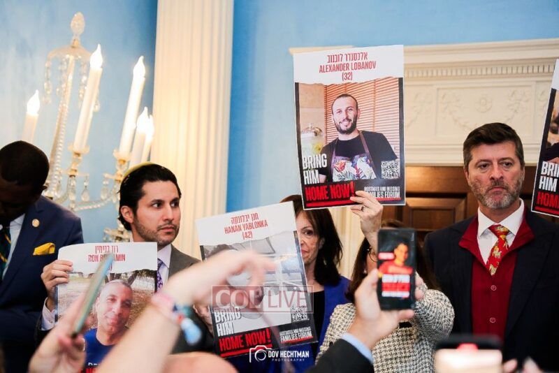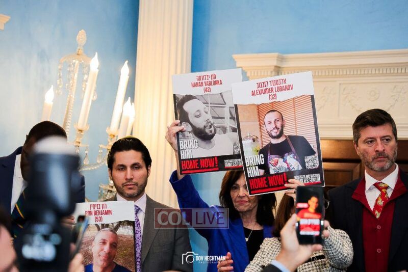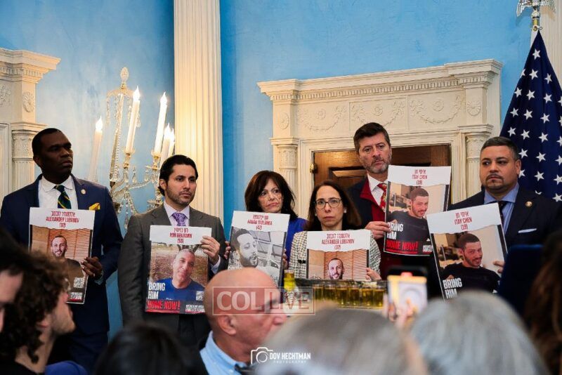 “These posters are not just mere photographs, they are human beings that we all hold our breath until they return to their family members and loved ones that are here,” Adams said as he thanked the families for their courage. “Bring the hostages home. Let them return home.”