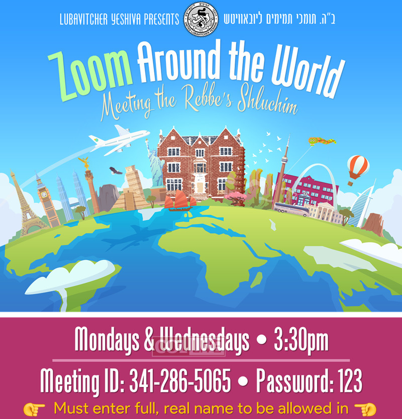 Every 30-minute program will visit another country. The participants will meet 3 Shluchim families from that day’s country.
