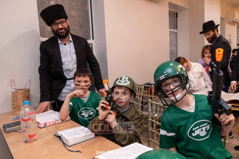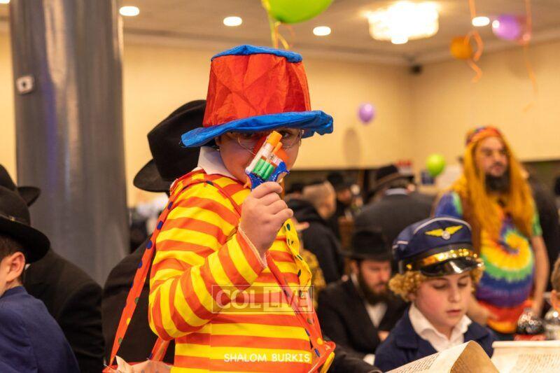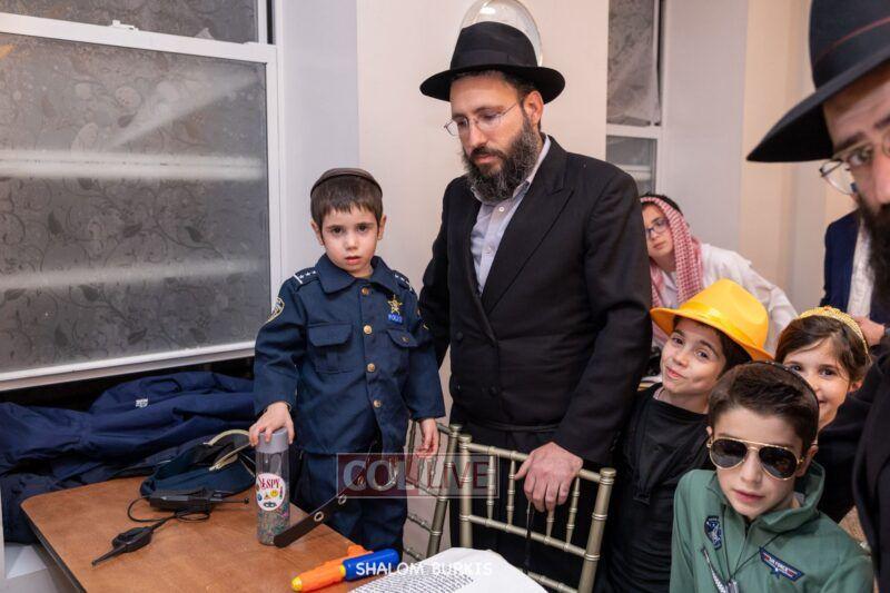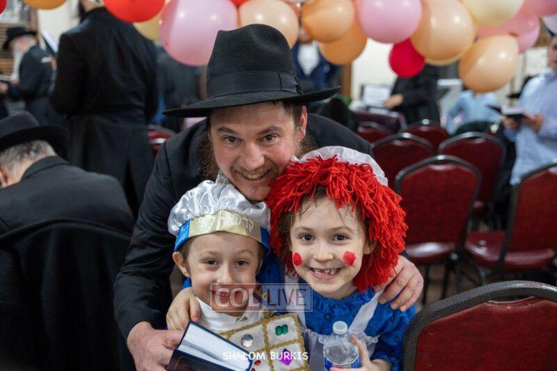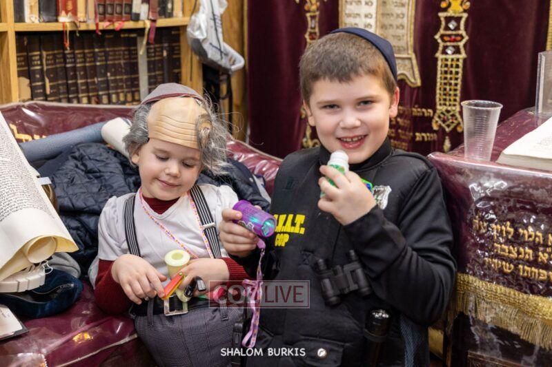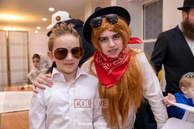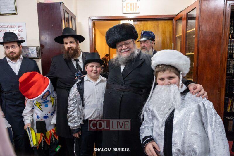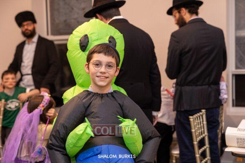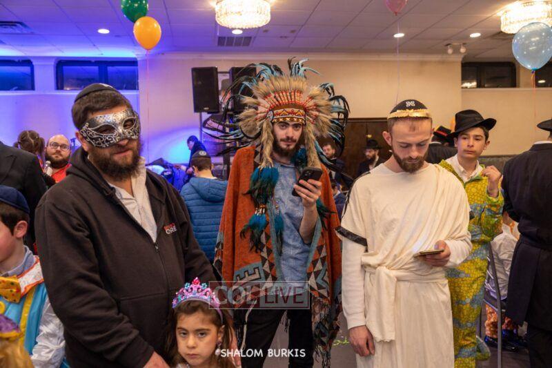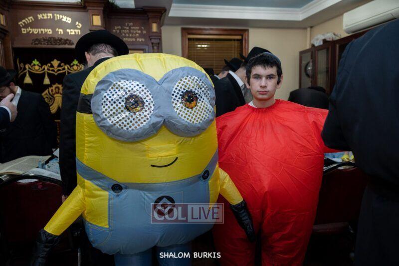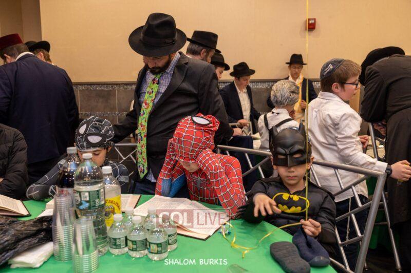 Crown Heights residents headed to Shuls across the neighborhood in festive and colorful costumes to hear the Megillah on Purim evening, Wednesday. Photos