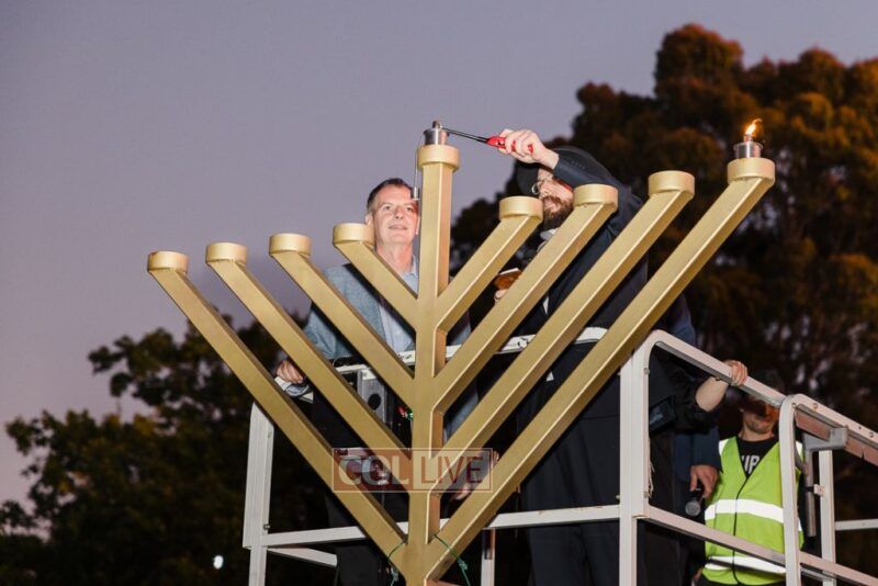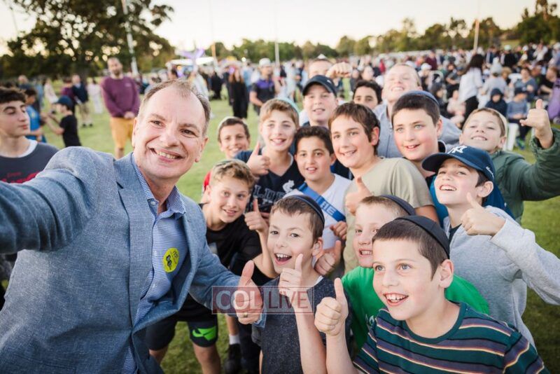 Before dark, the community heard greetings conveyed from Rabbi Yossel Gutnick and from Rabbi Zalman Gutnick, which was followed by greetings from state politicians, David Southwick the deputy leader of the liberal party and member for Caulfield, and Josh Burns member for Macnamara.