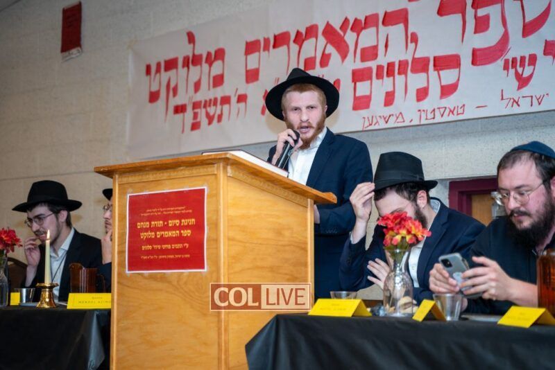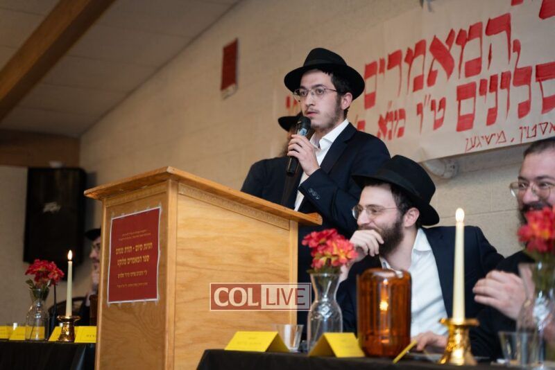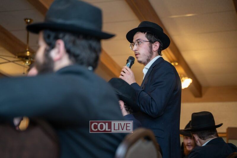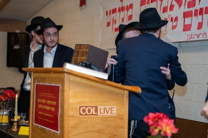 One of the most touching moments of the evening came when Mottel’s friends surprised him with a stunning, custom-made leather-bound set of Sefer HaMaamorim Melukat. The beautiful gift left Mottel visibly moved and added to the sense of accomplishment and recognition of his dedication to learning the Rebbe’s Torah.