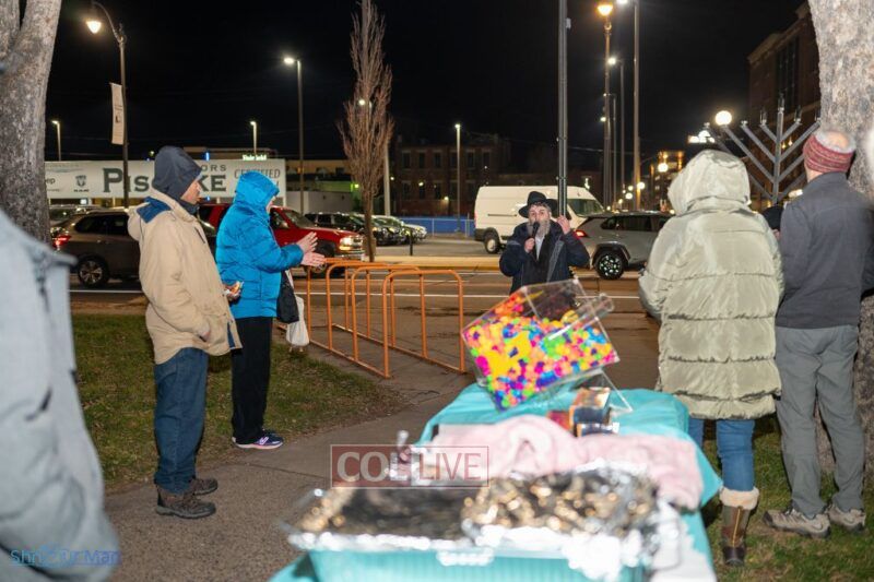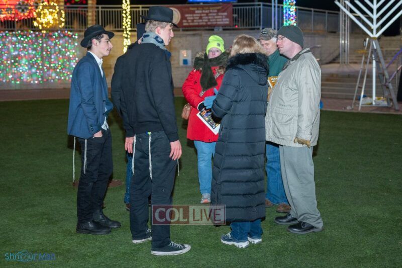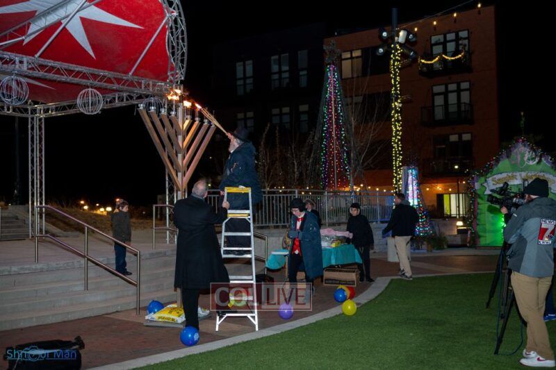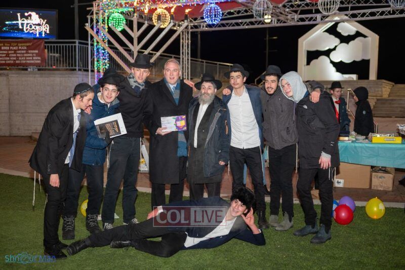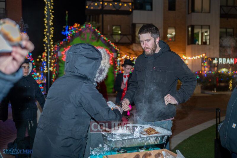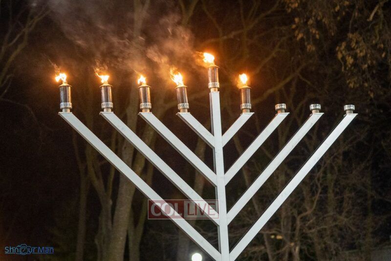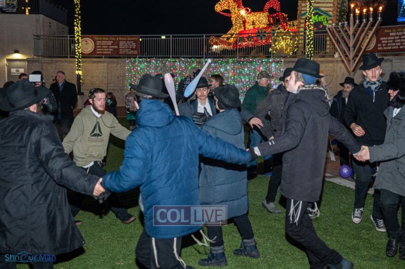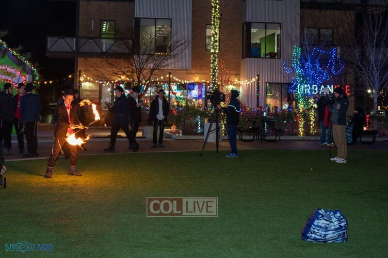 The crowd enjoyed entertainment by juggler Mendel Goldstein, latkes and donuts.