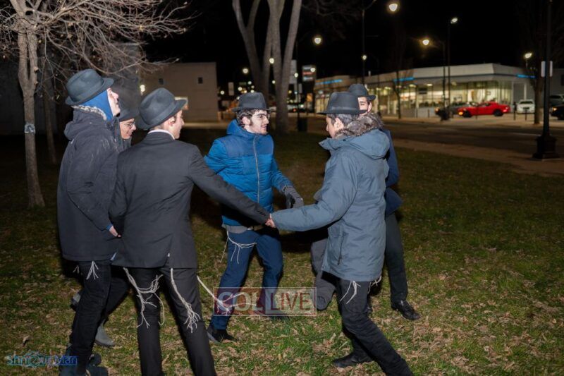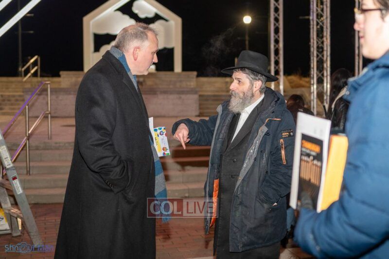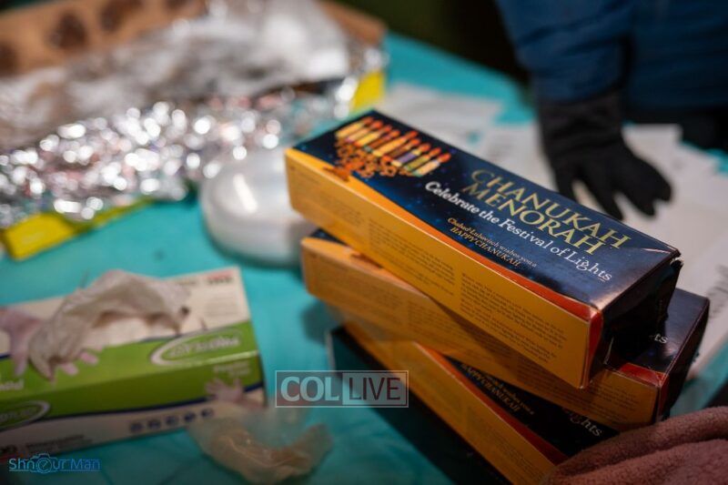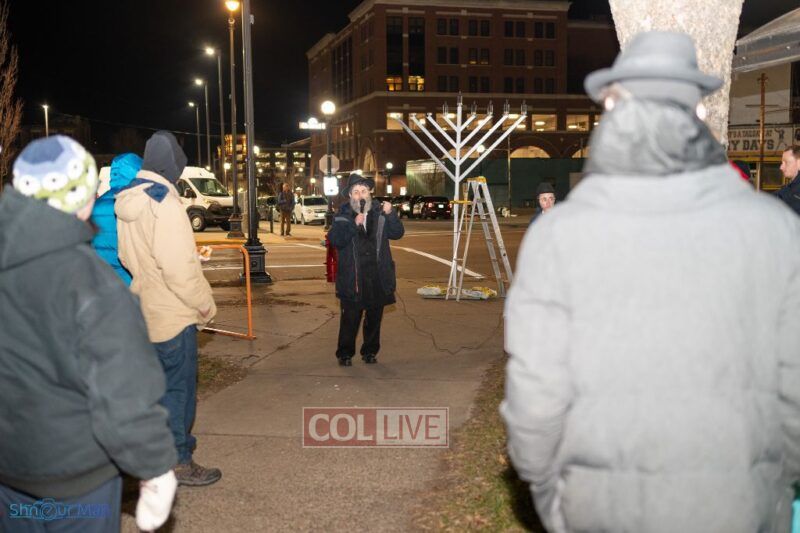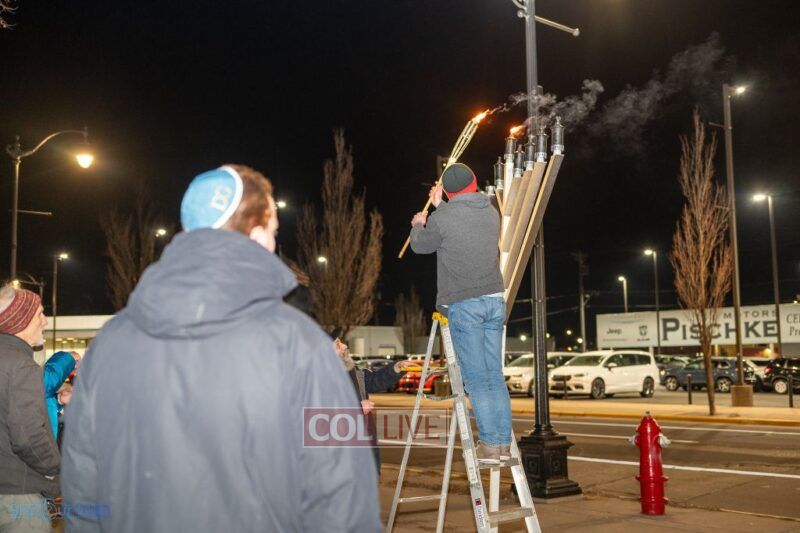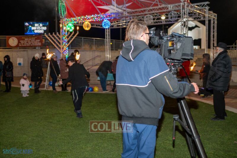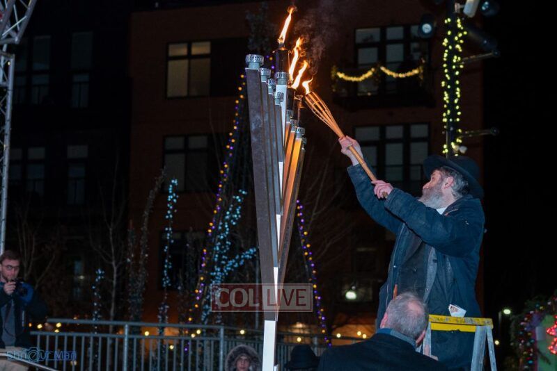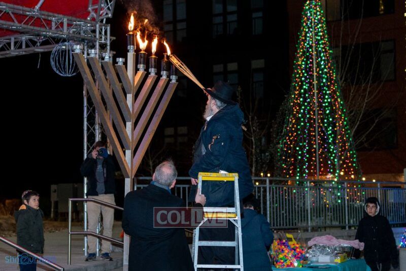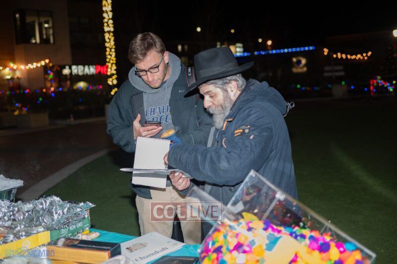 The crowd enjoyed entertainment by juggler Mendel Goldstein, latkes and donuts.