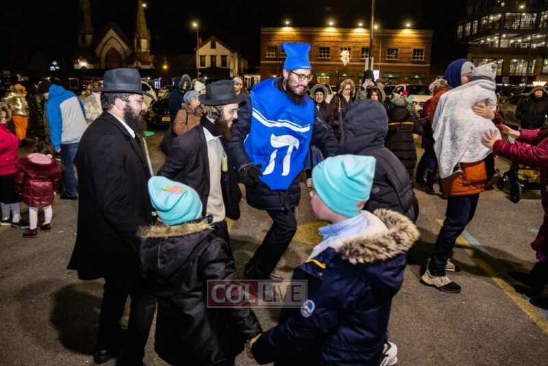 The parade ended off at Netcost supermarket where over 150 people gathered to light the grand Menorah followed by a light show, and a Chanukah concert featuring Chony Zucker.